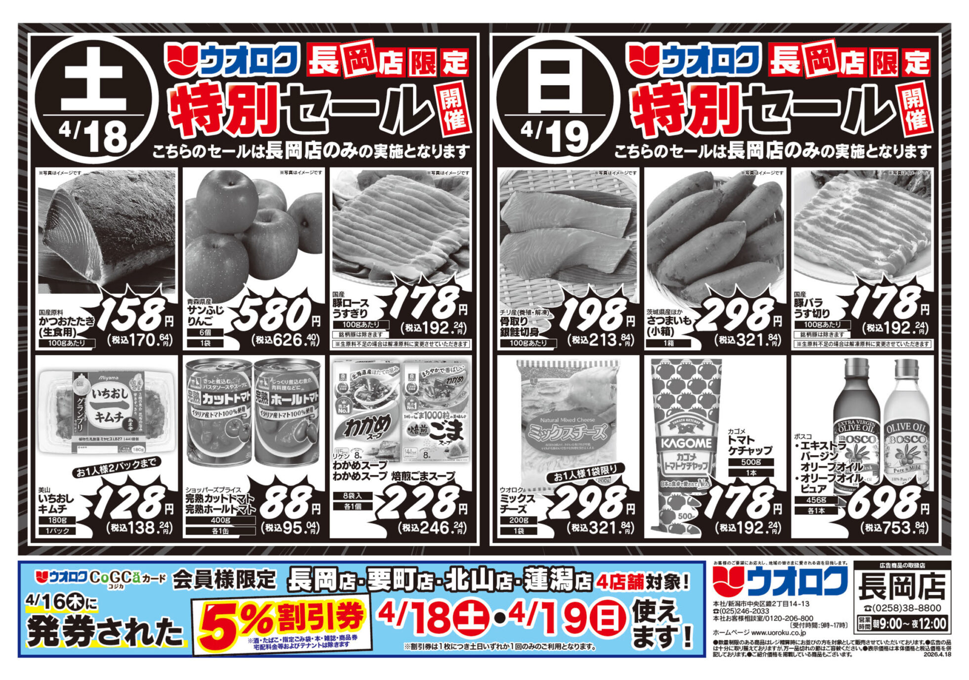 【ウオロク長岡店チラシ】限定特別セール開催