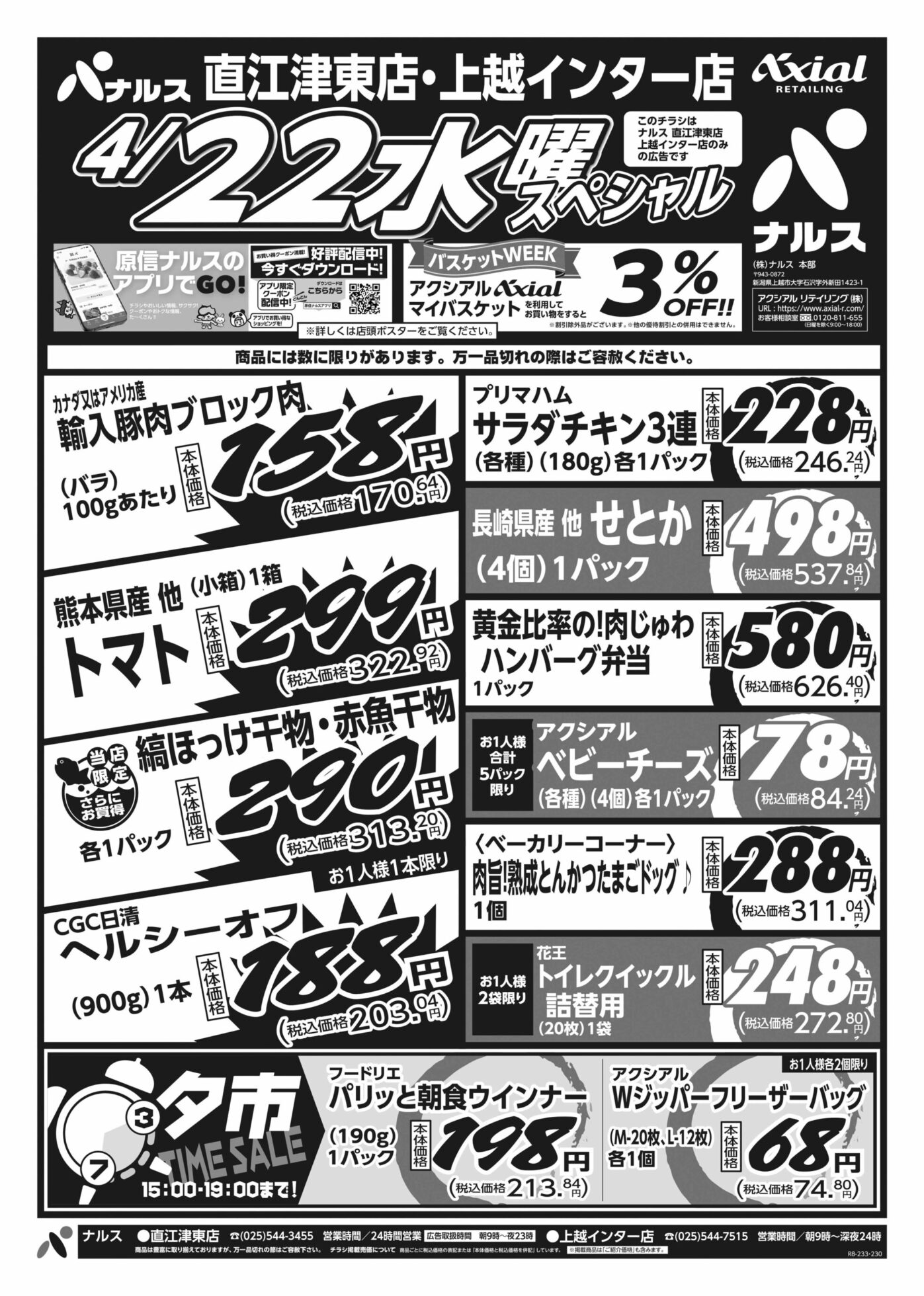 チラシをクリックで拡大できます 対象:直江津東店・上越インター店 インフォメーション 「原信ナルス」のホームページはこちらから https://www.harashinnarus.jp// SNSで記事を共有する セール・新店情報を見逃さない!