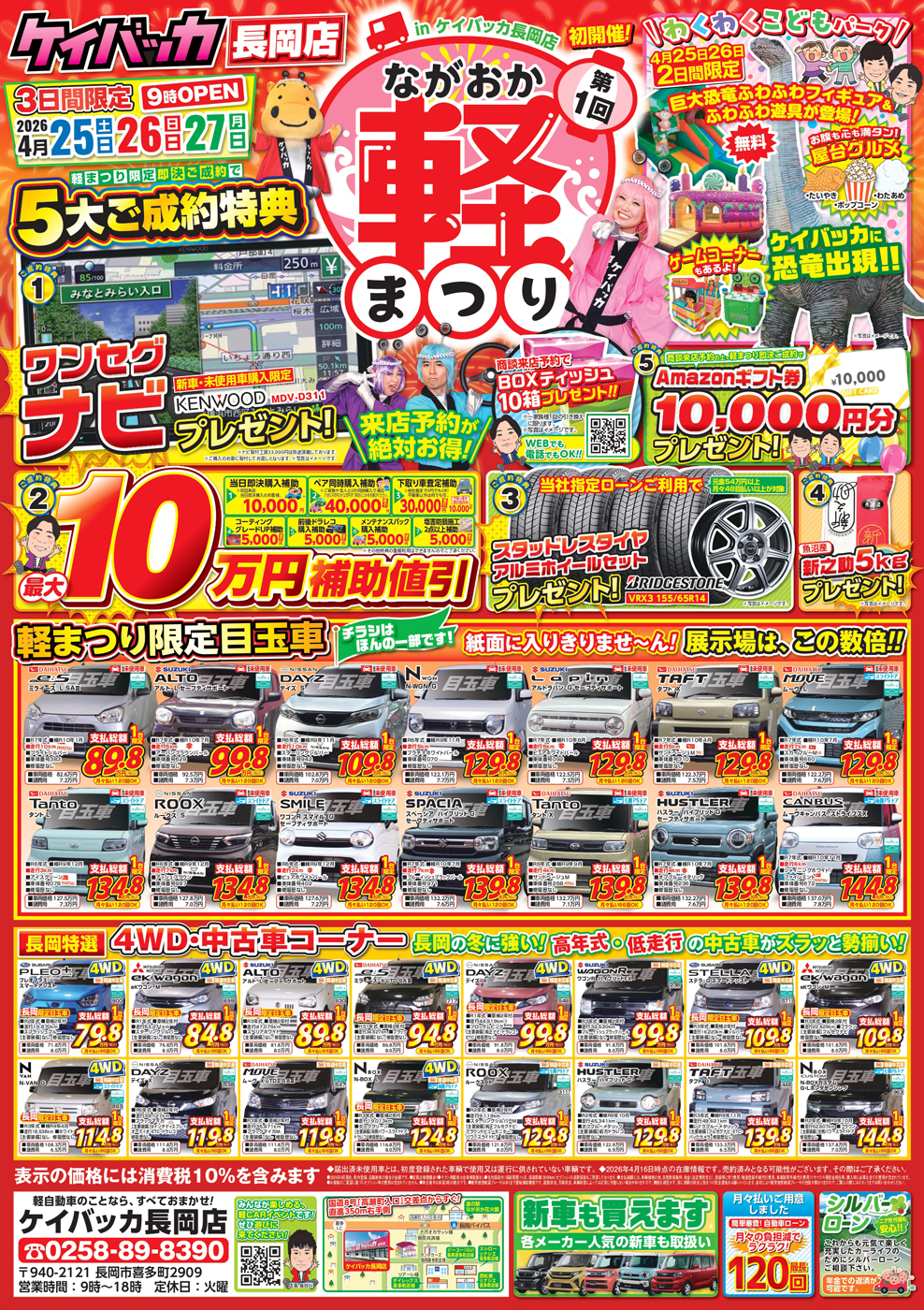 | 電話番号 | ケイバッカ長岡店 0258-89-8391 車検の桃太郎長岡店 0120-949-487 |