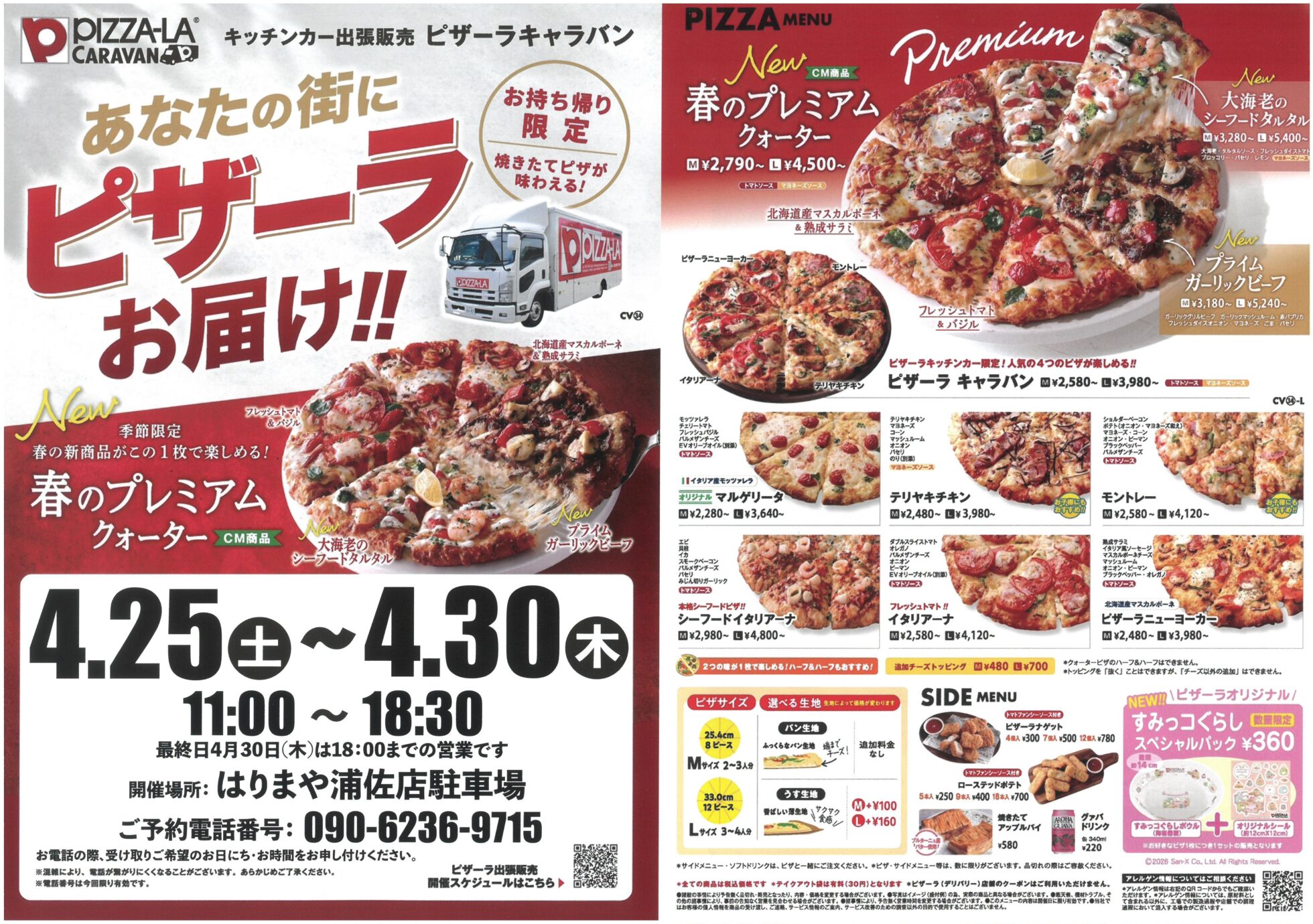 【ピザーラチラシ】キッチンカー出張販売 はりまや浦佐店
