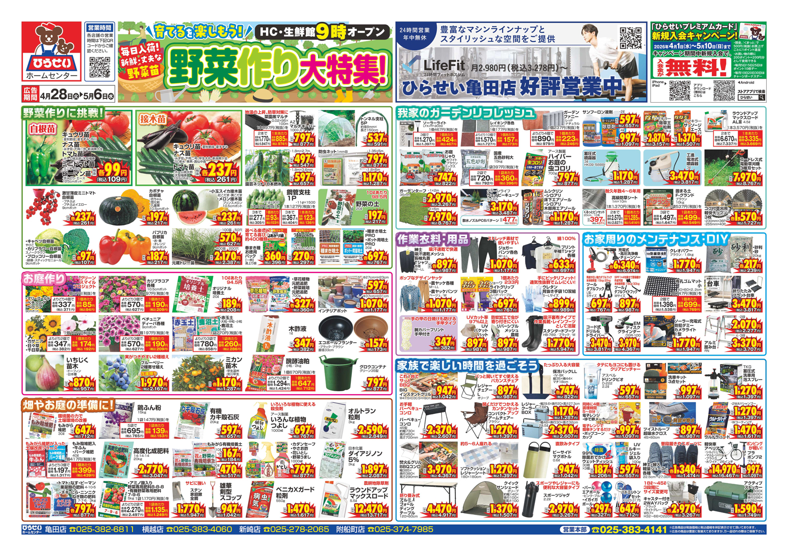新発田店・岩上店・豊栄インター店・寺尾台店・白根バイパス店・新津北上店・吉田店・上越店・中条店・柏崎柳田店・五泉店・新発田1丁目1番地店