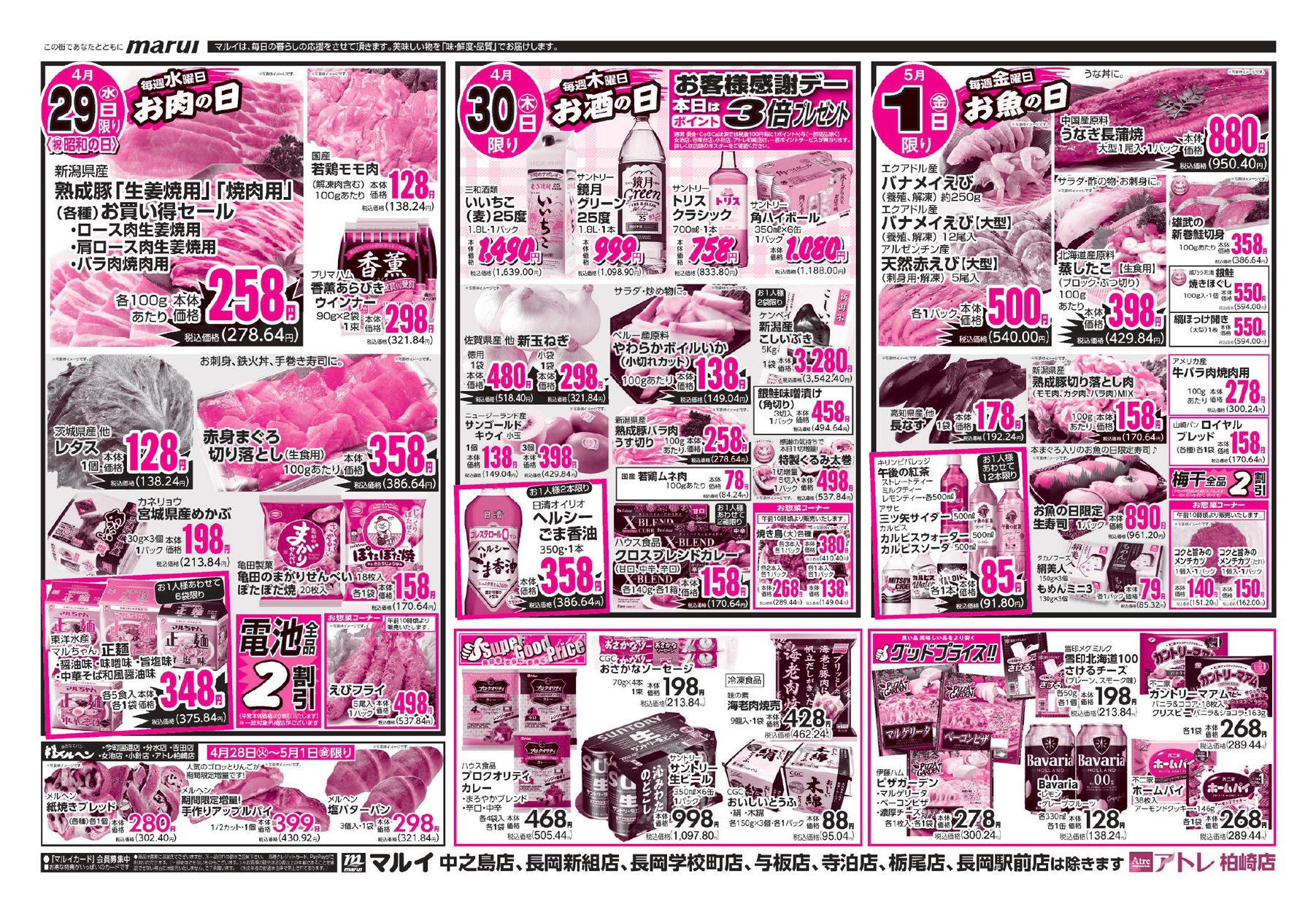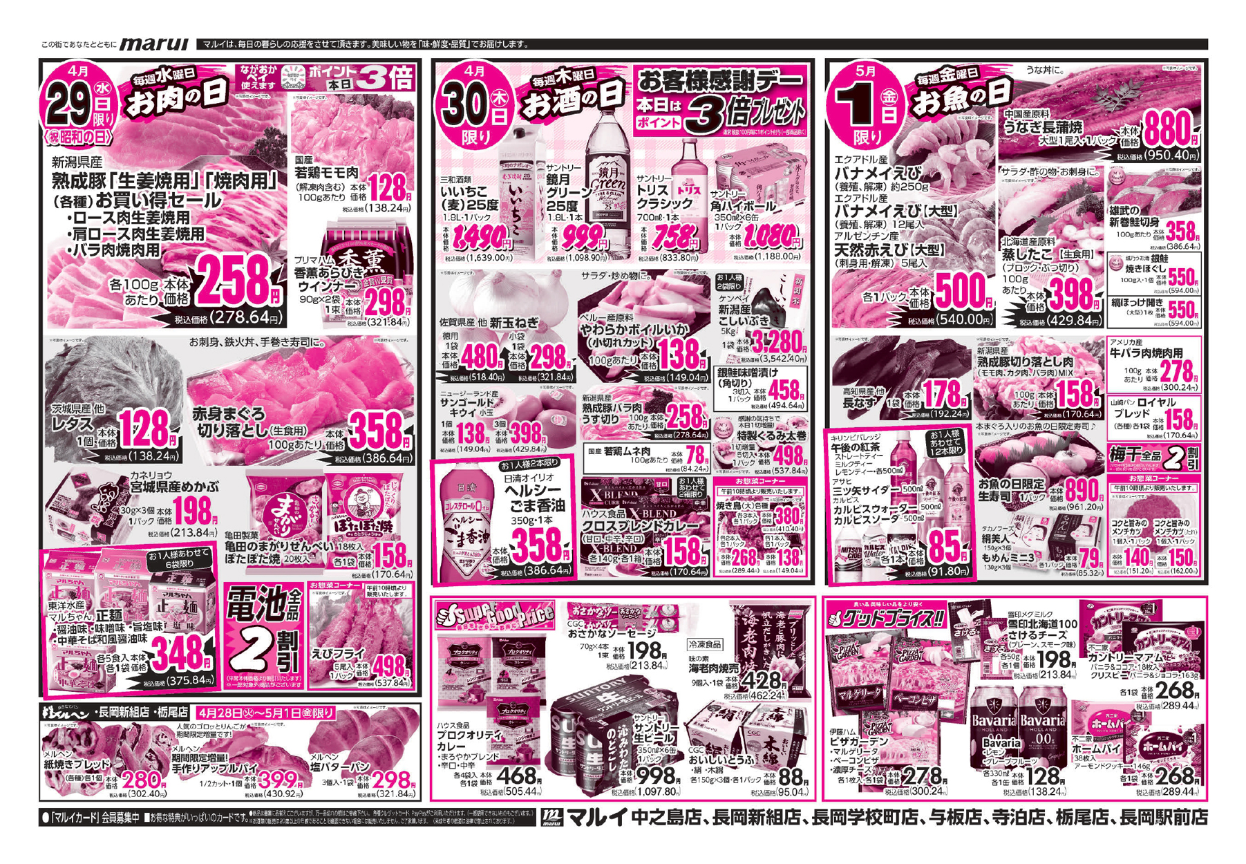 各店 チラシをクリックで拡大できます 中之島店・長岡新組店・長岡学校町店・与板店・寺泊店・栃尾店・長岡駅前店 チラシをクリックで拡大できます インフォメーション ホームページ https://www.super-marui.com/ SNSで記事を共有する セール・新店情報を見逃さない!