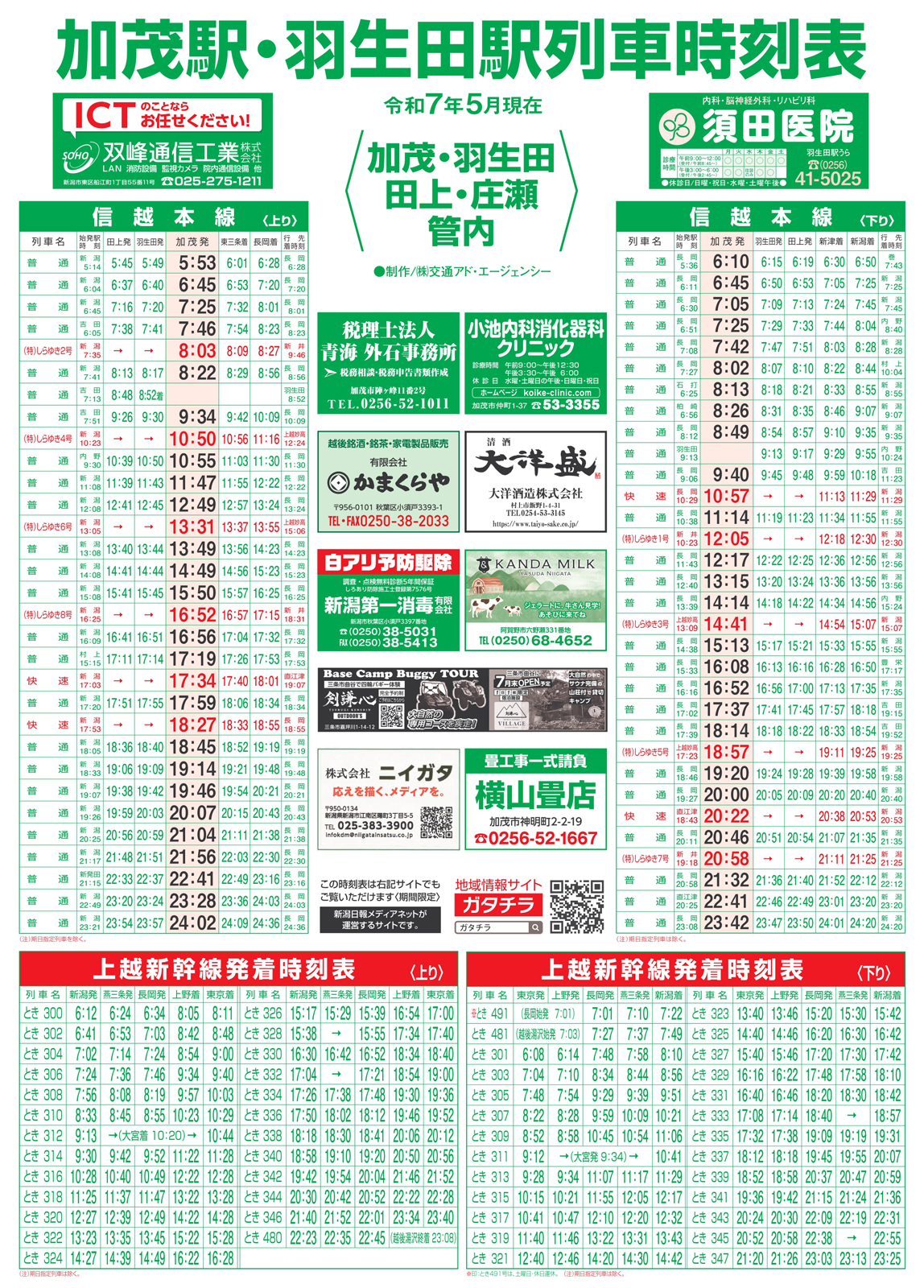【新潟交通高速バス・新幹線時刻表チラシ】東新潟地区
