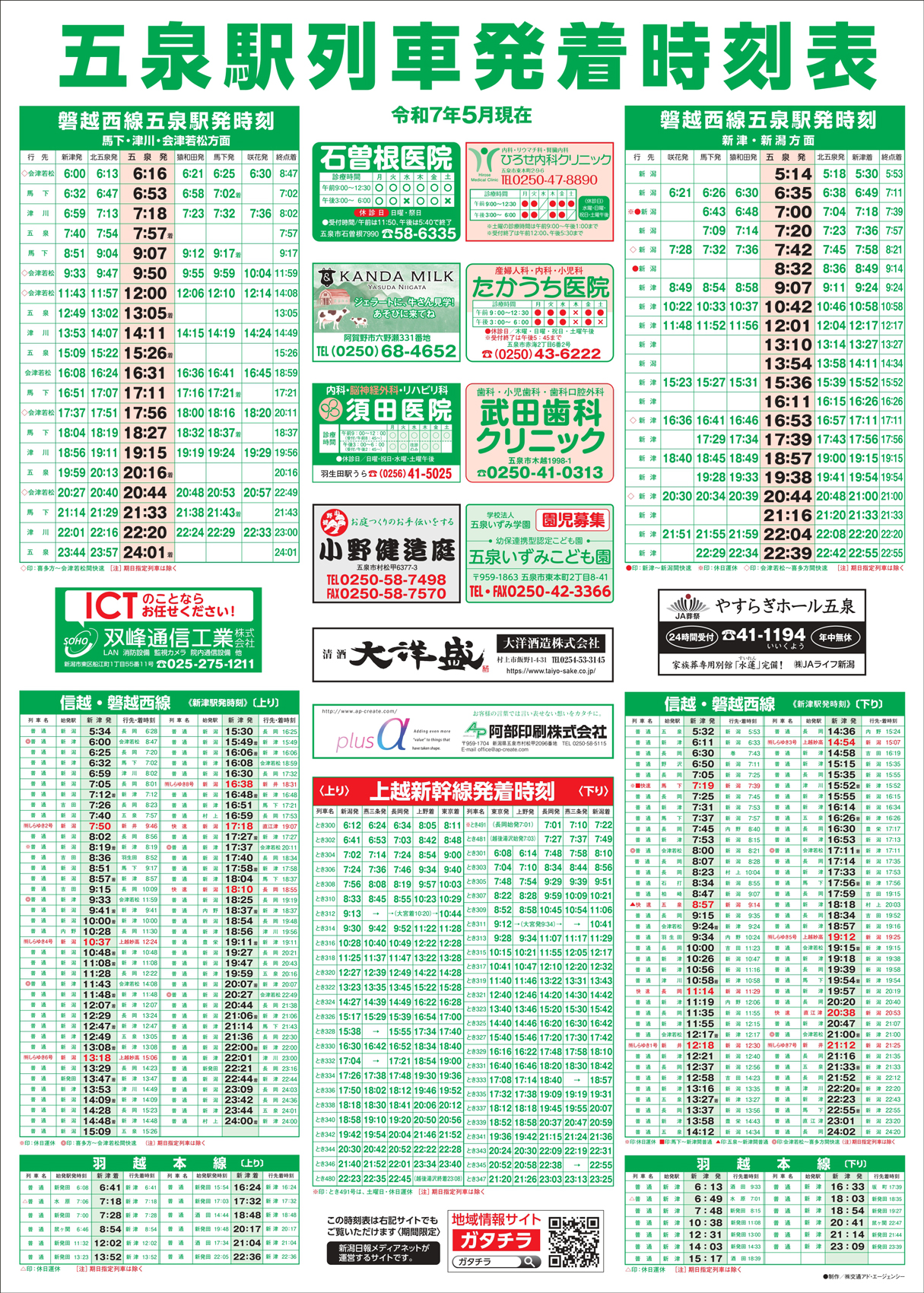 五泉駅列車発着時刻表 【五泉駅列車発着時刻表チラシ】五泉地区 掲載期間:2025年5月31日〜2025年12月31日 下越 時刻表 画像をクリックして拡大 prev next 関連 乗り遅れないようにしっかりチェックよ!