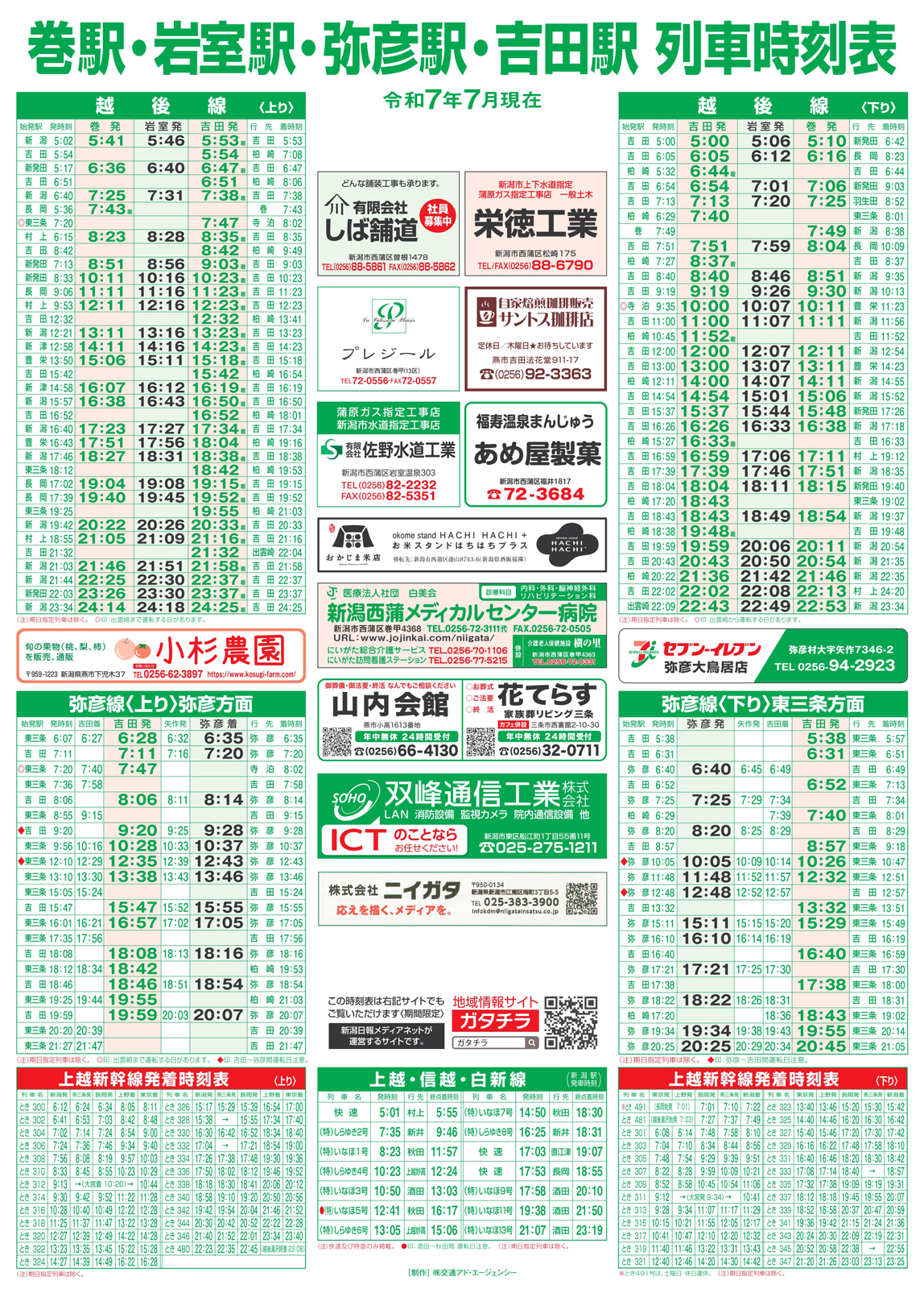 巻・岩室・弥彦・吉田駅発着時刻表 【巻・岩室・弥彦・吉田駅発着時刻表チラシ】弥彦・巻地区 掲載期間:2025年7月26日〜2025年12月31日 新潟市 時刻表 画像をクリックして拡大 prev next 関連 しっかり確認するのよ~♪