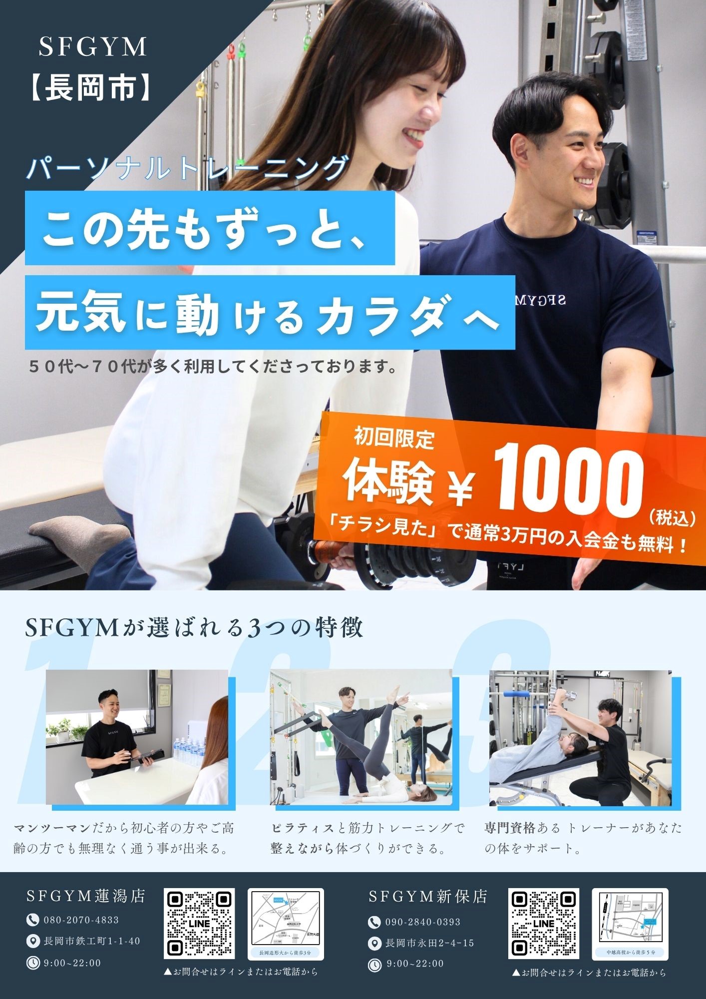TOP > チラシ情報 > スポーツジム > 【SFGYMチラシ】この先もずっと、元気に動けるカラダへ