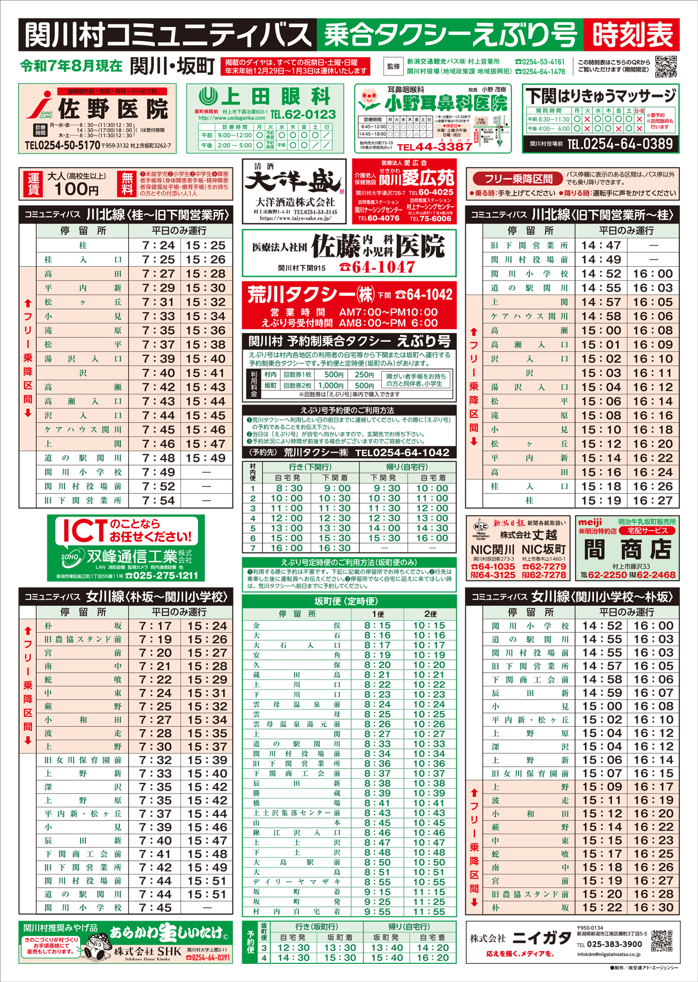 【関川村コミュニティバス時刻表チラシ】関川・坂町地区
