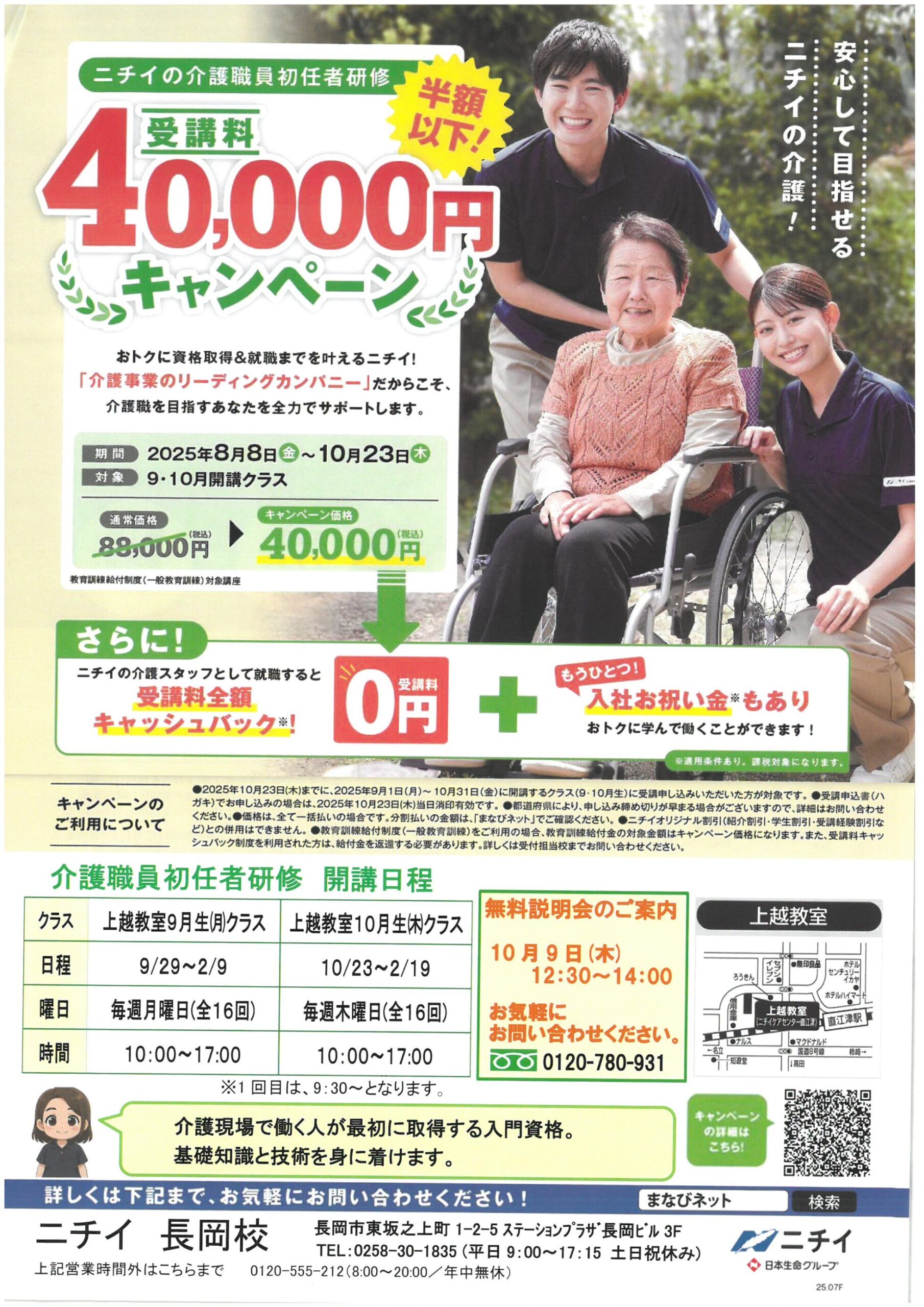 【ニチイ学館長岡支店 上越教室チラシ】受講料全額キャッシュバック!