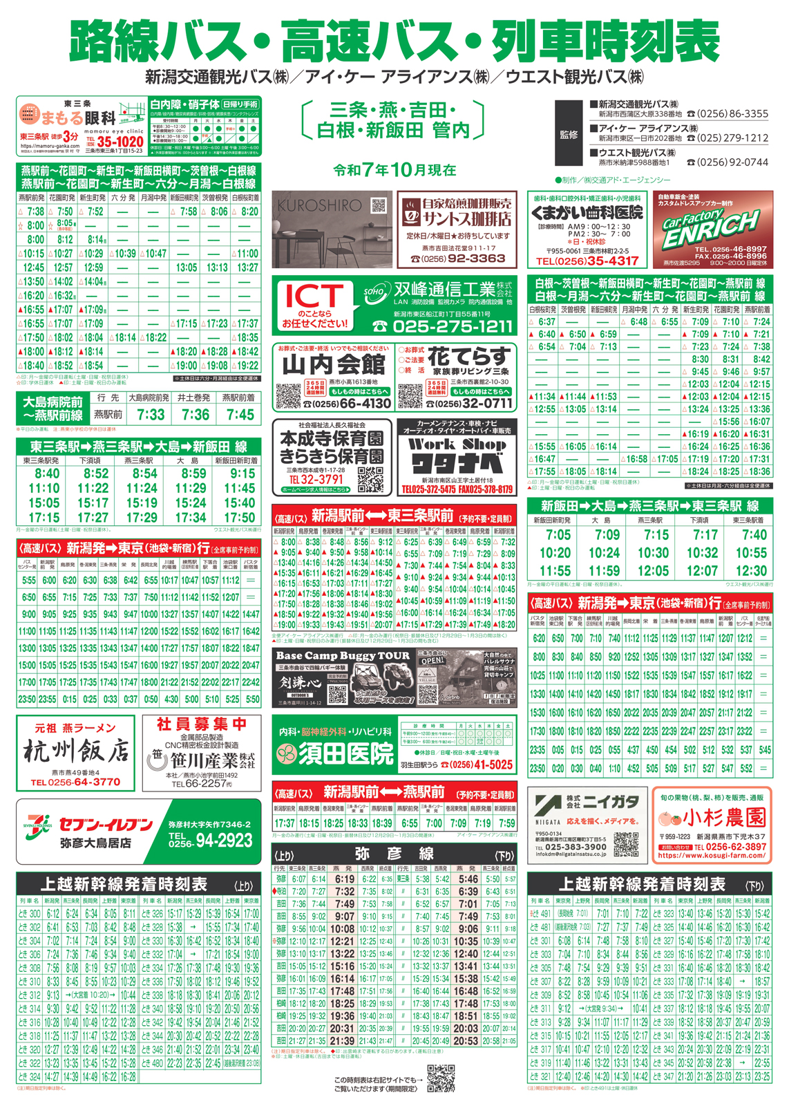 【路線バス・高速バス・列車時刻表チラシ】三条・燕地区