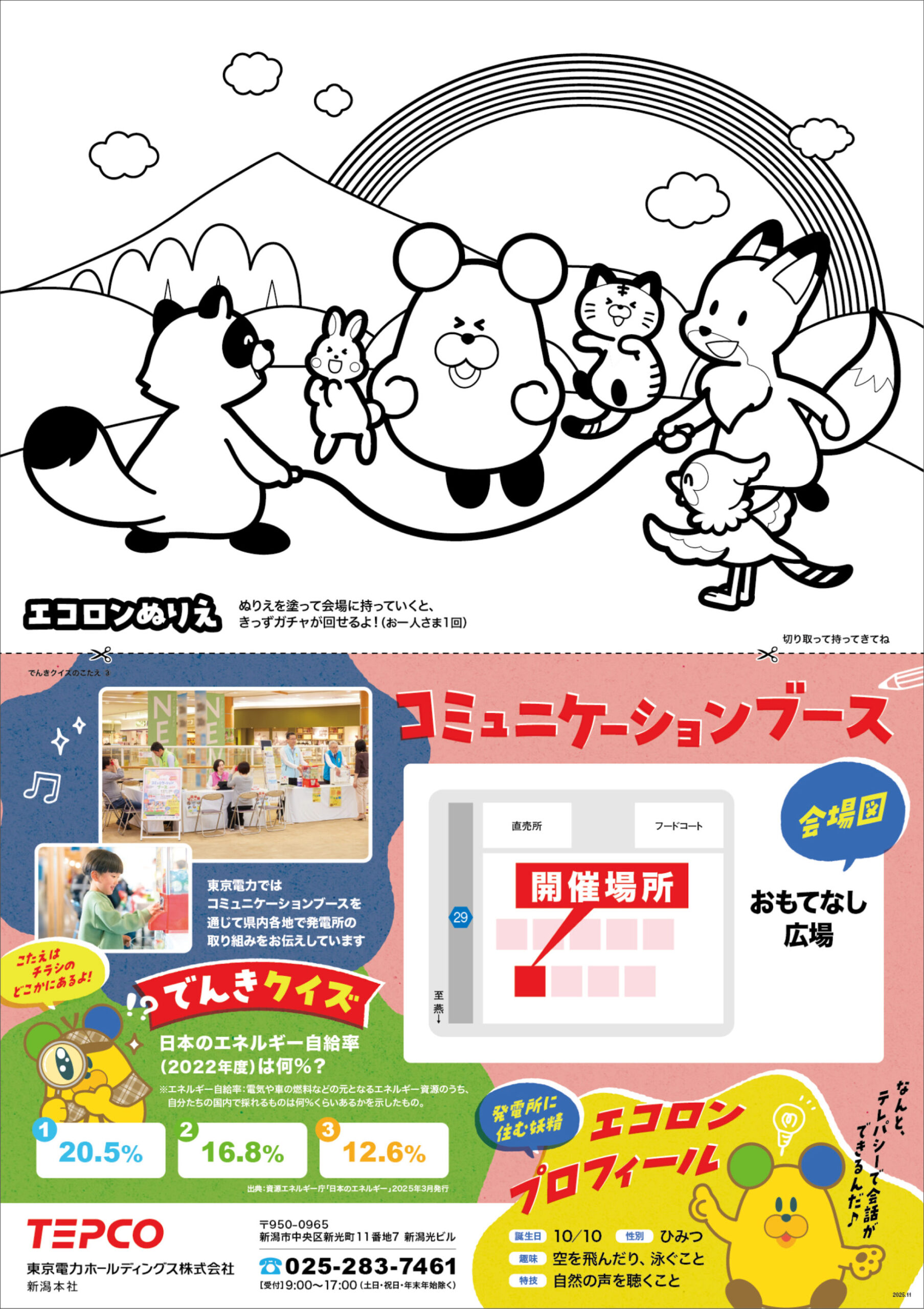 東京電力ホールディングス株式会社 新潟本社 【東京電力ホールディングスチラシ】東京電力コミュニケーションブースin弥彦村 掲載期間:2025年10月29日〜2025年11月15日 下越 イベント 画像をクリックして拡大 prev next 関連 原子力発電について家族で話し合ういい機会ね!