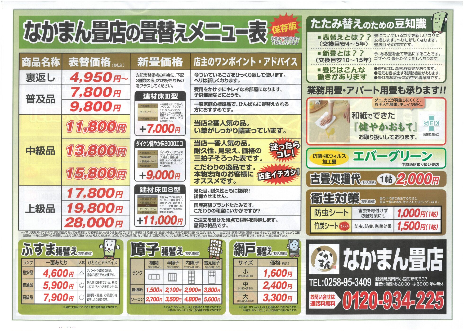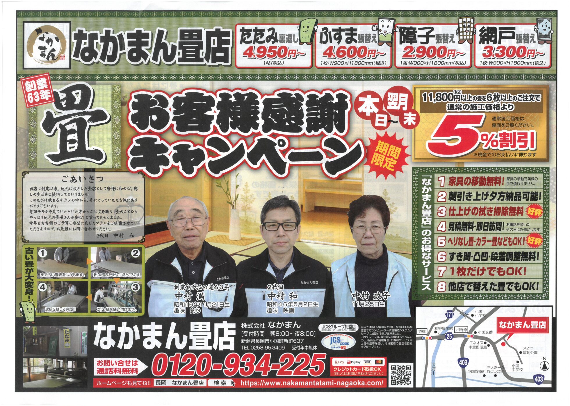 【なかまん畳店チラシ】お客様感謝キャンペーン