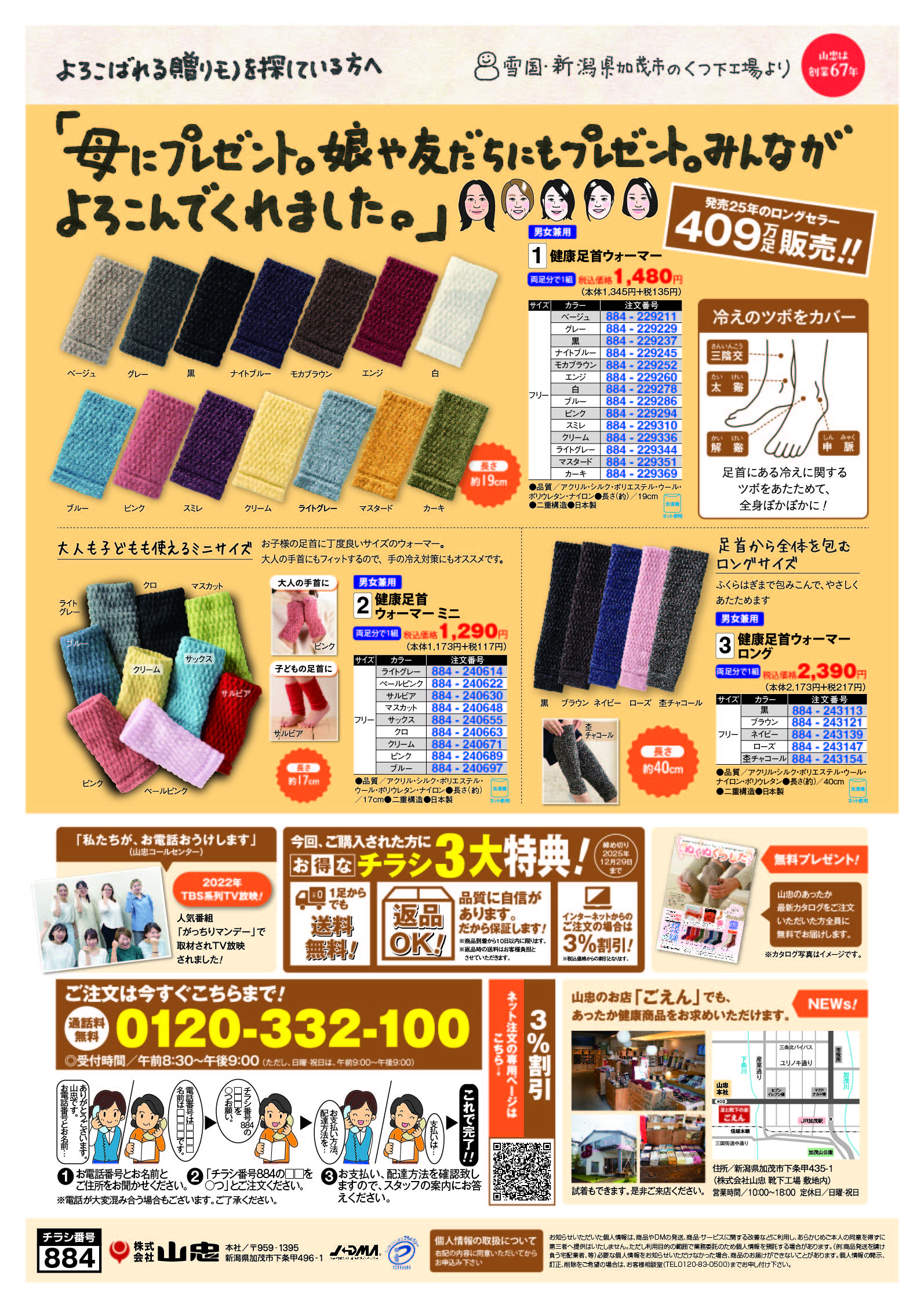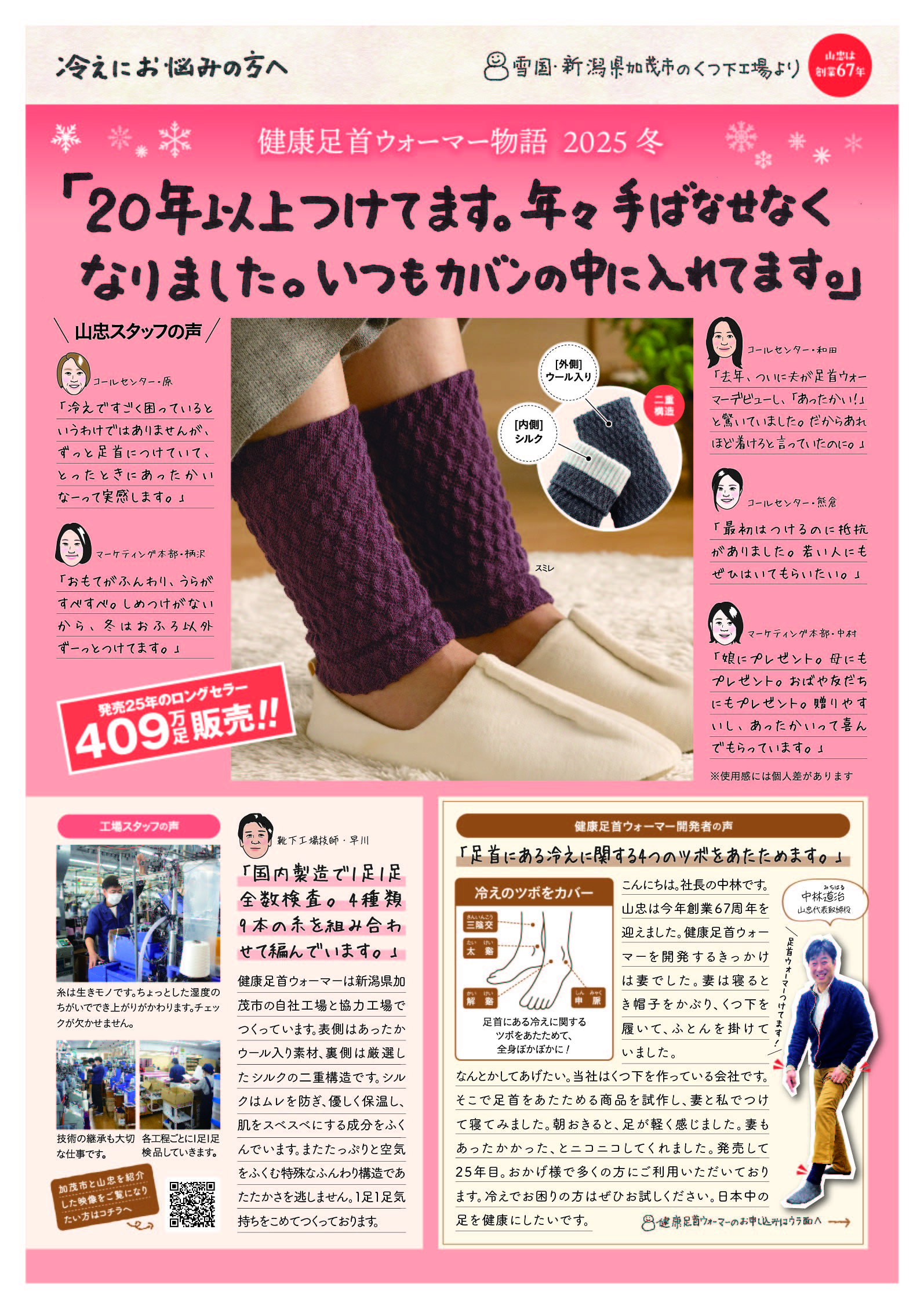 【山忠チラシ】約3日間履くだけで、「冷えにお悩みの方へ。足首をあたためて、全身ポカポカに!