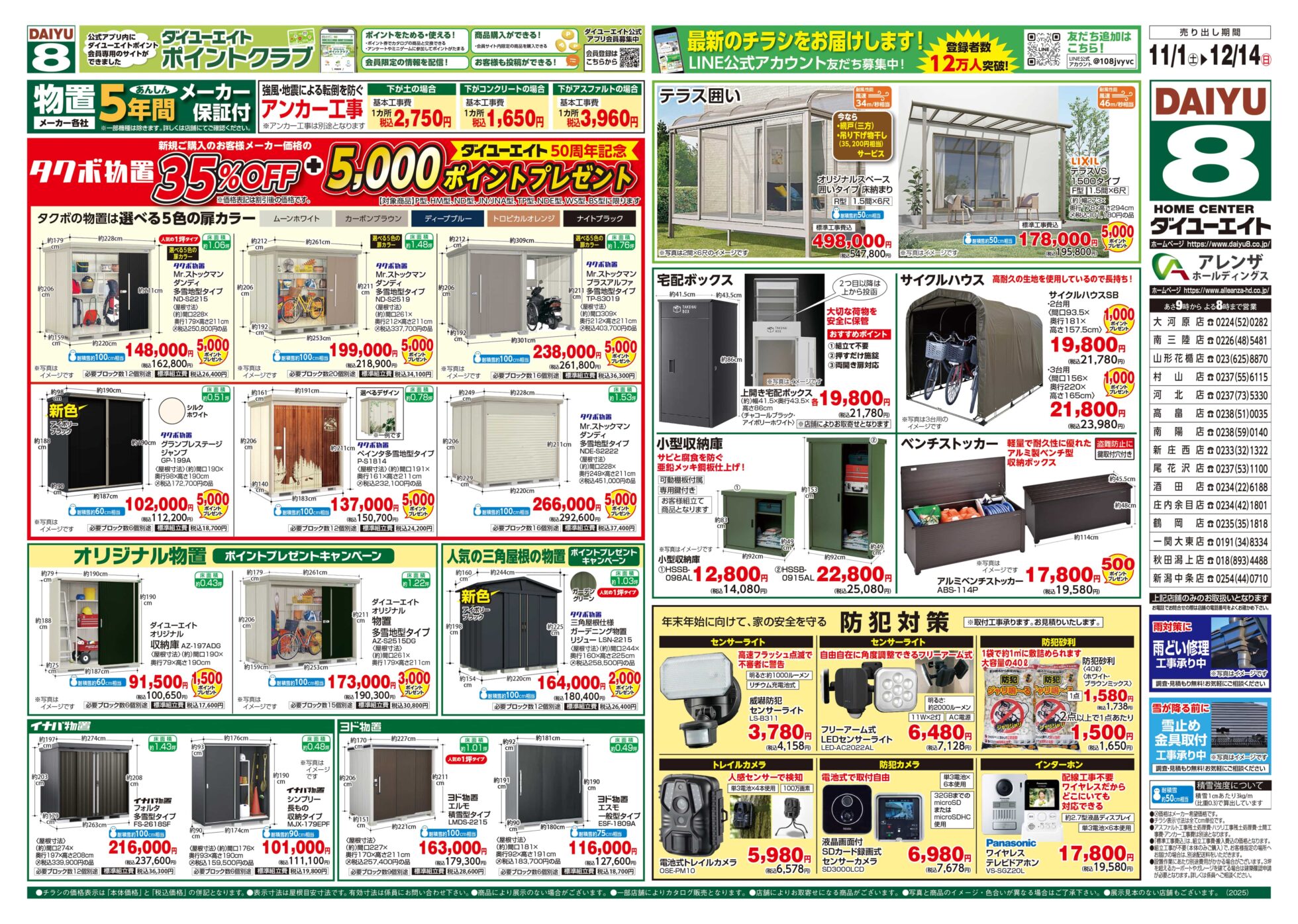 TOP > チラシ情報 > ホームセンター > 【ダイユーエイトチラシ】雪から愛車を守るカーポート エクステリアフェア