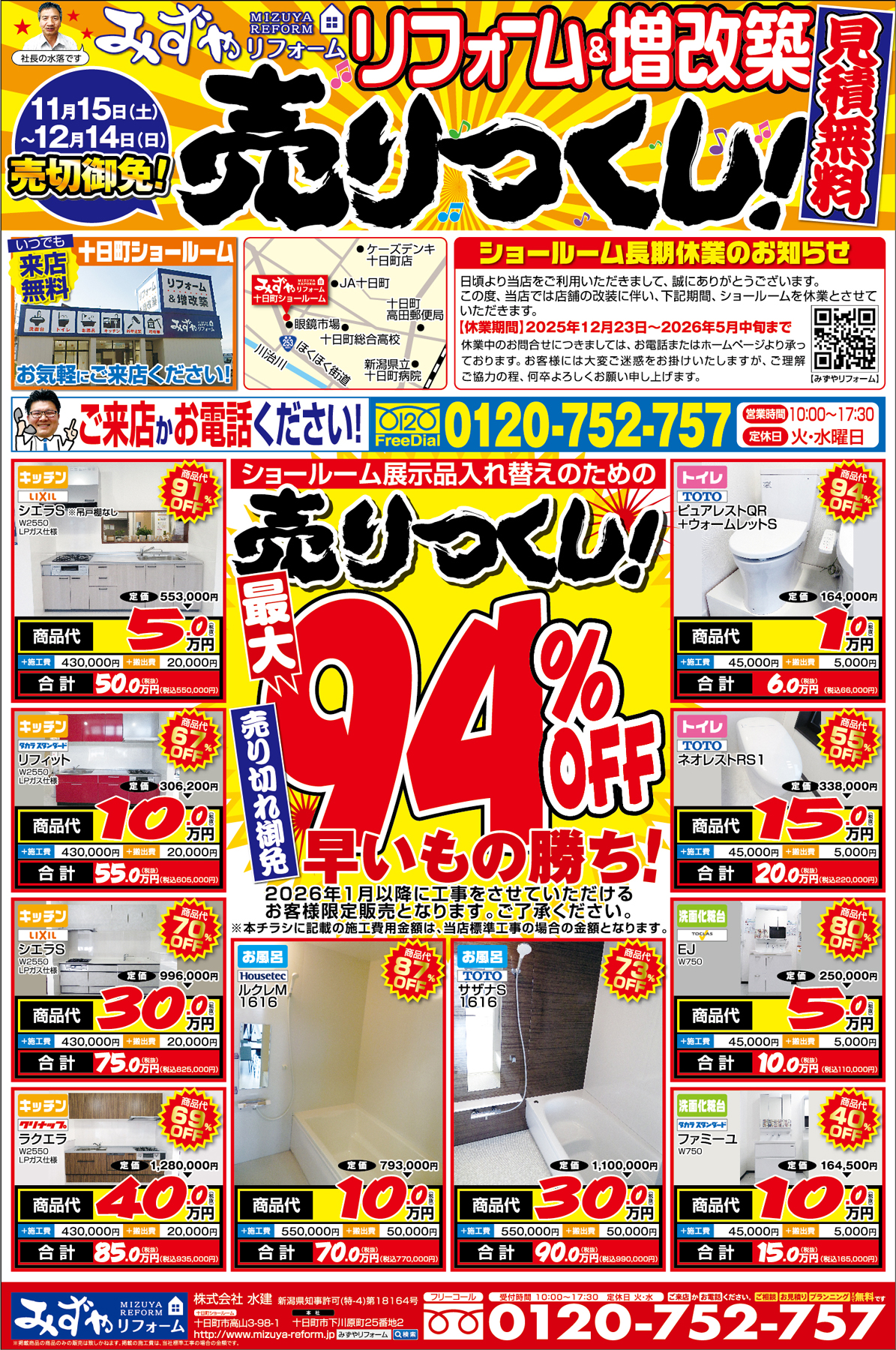 【みずやリフォームチラシ】売りつくし!最大94%OFF 早いもの勝ち!