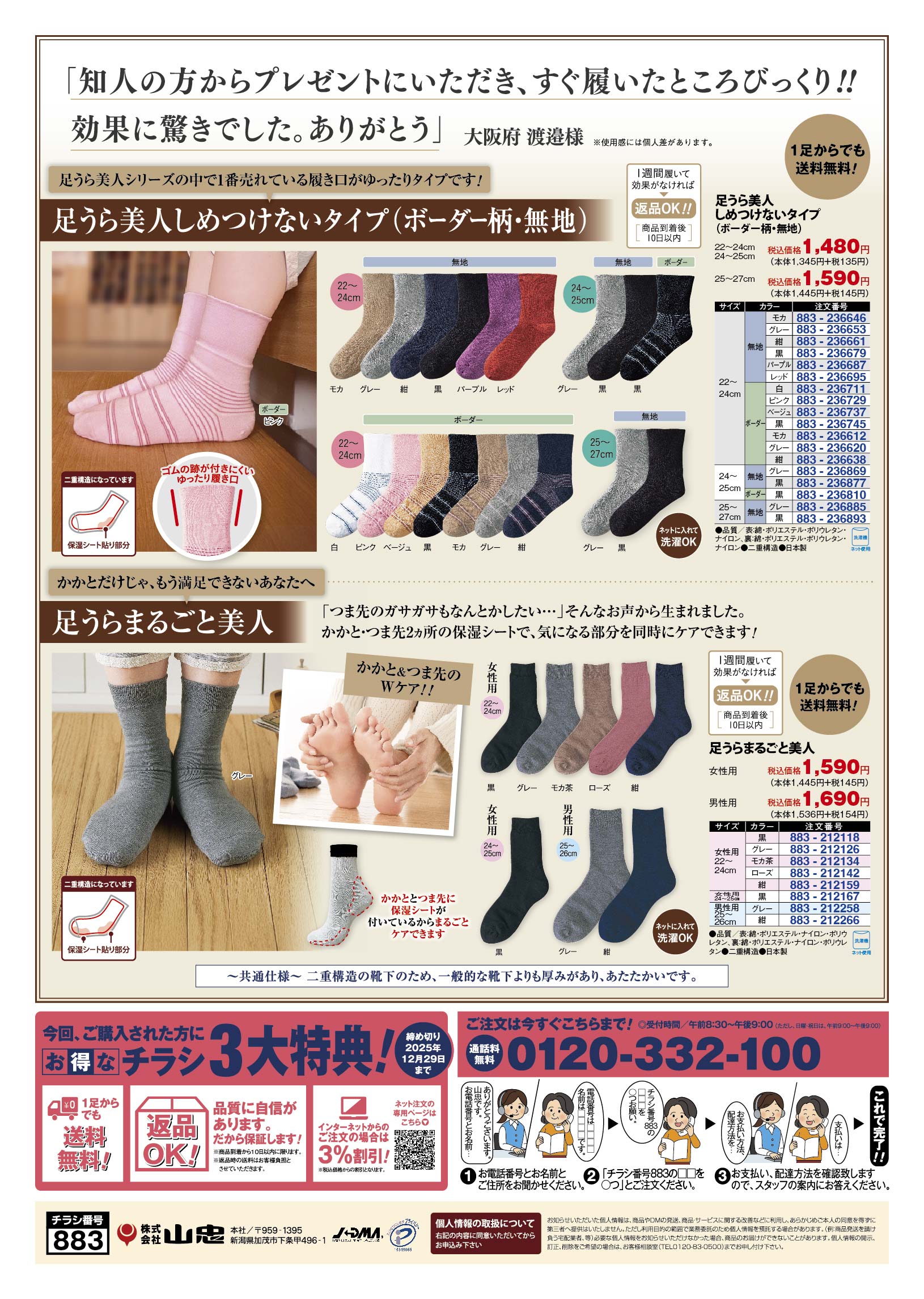 【山忠チラシ】約3日間履くだけで、「冷えにお悩みの方へ。足首をあたためて、全身ポカポカに…