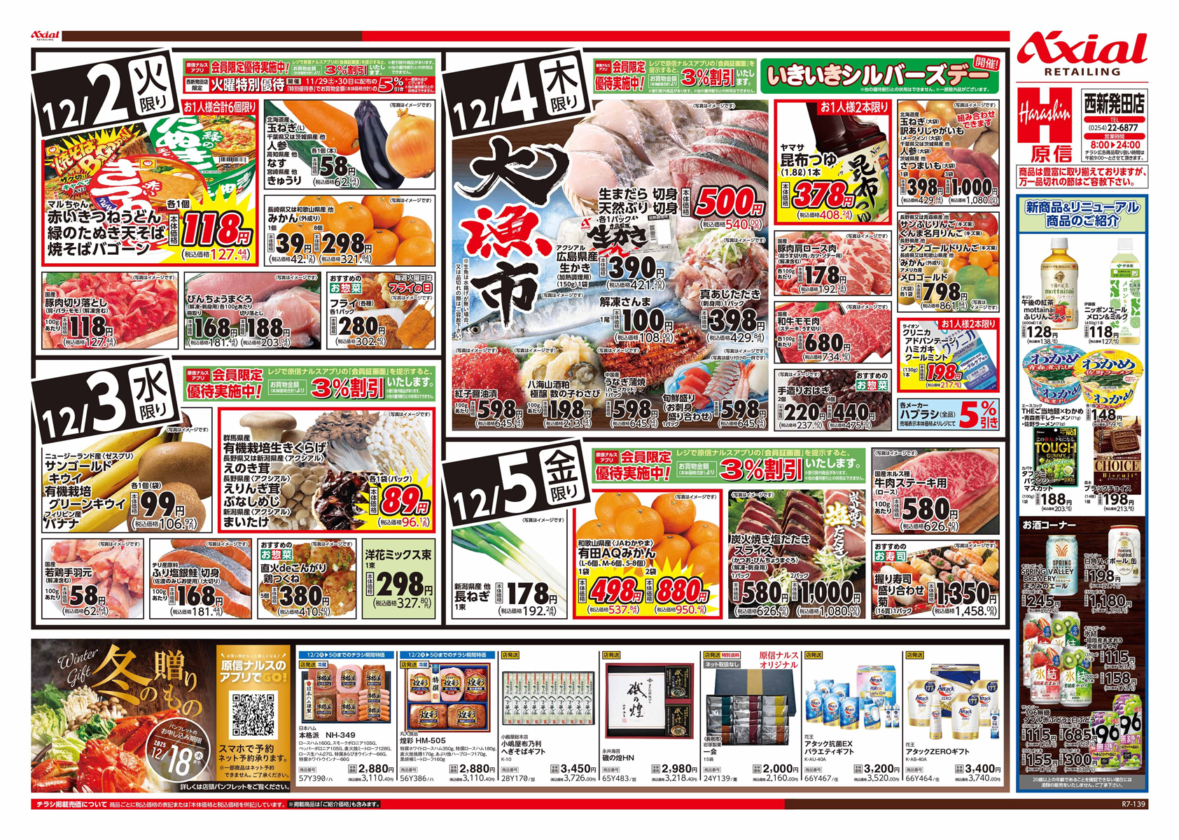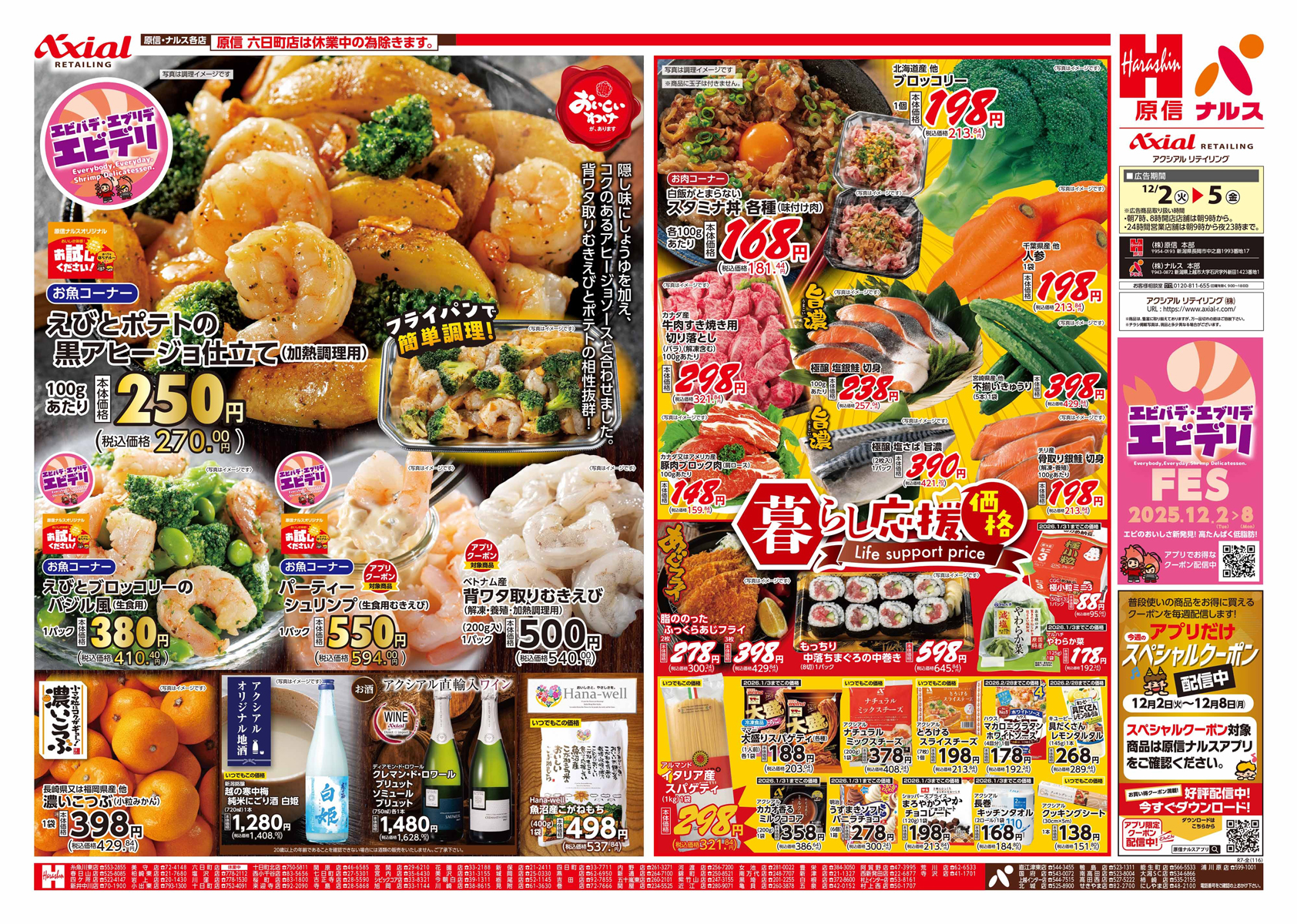原信ナルス 【原信ナルスチラシ】エビバデ・エブリデ エビチリ/暮らし応援価格 掲載期間:2025年12月2日〜2025年12月5日 上越中越新潟市下越 スーパー原信ナルス 目次 全店 西新発田店 全店 画像をクリックして拡大 prev next 対象:全店(西新発田店・六日町店除く) 西新発田店 画像をクリックして拡大 prev next 対象:西新発田店のみ セール・新店情報を見逃さない! ガタチラをホーム画面に追加して、 最新情報をすぐチェック▶追加方法はかんたん♪ 関連 エビを使ったお惣菜、おいしそう! むきえびも、下処理なしで料理できるから便利ね!