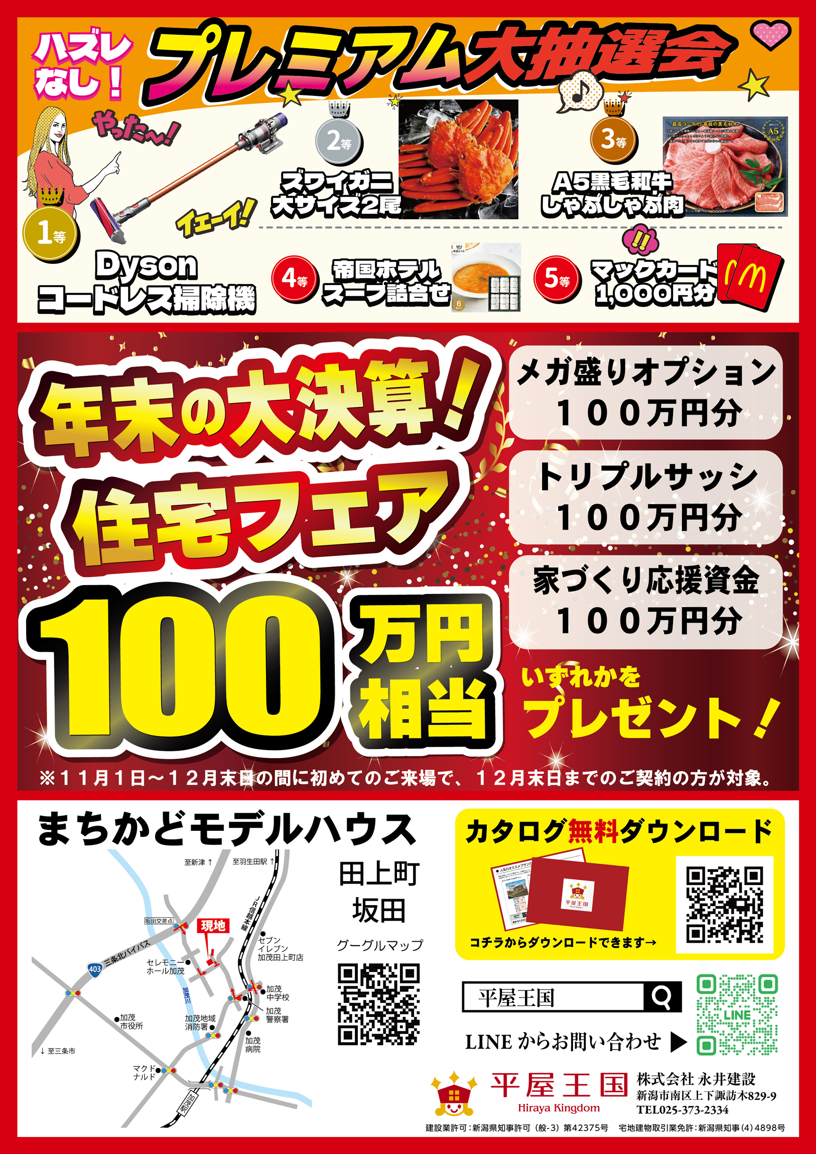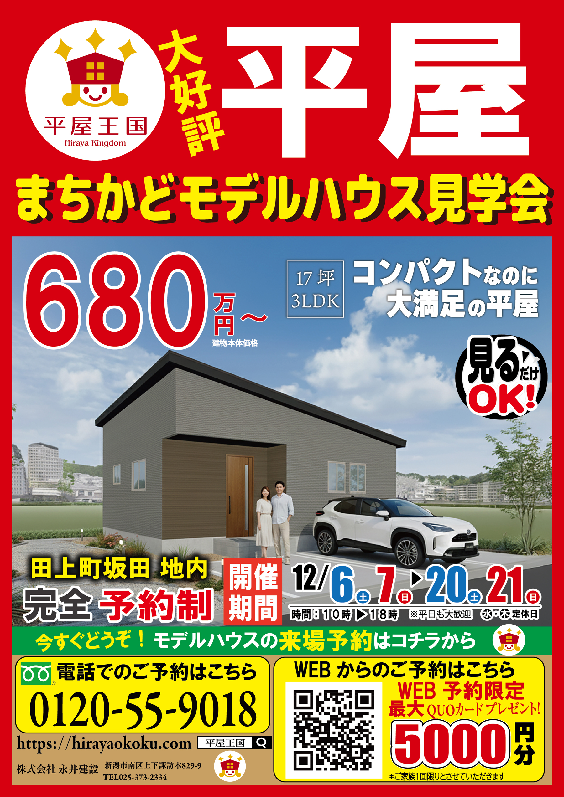 永井建設 【永井建設チラシ】田上町見学会 掲載期間:2025年12月3日〜2025年12月21日 中越 不動産 画像をクリックして拡大 prev next セール・新店情報を見逃さない! ガタチラをホーム画面に追加して、 最新情報をすぐチェック▶追加方法はかんたん♪ 関連 WEBからの予約で嬉しいプレゼントがもらえるのね♪