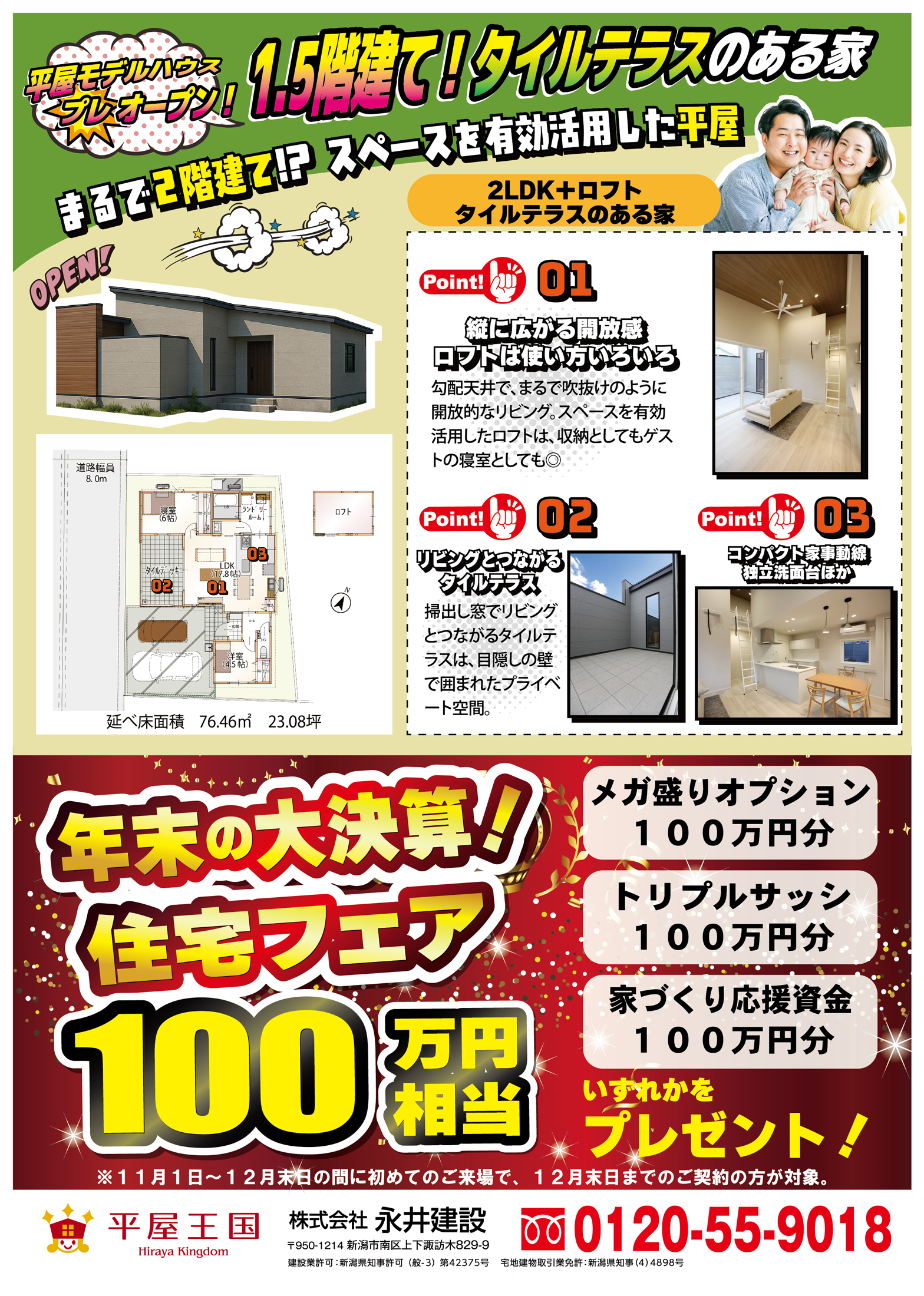 永井建設 【永井建設チラシ】川口モデルハウス 掲載期間:2025年12月3日〜2025年12月21日 新潟市 不動産 画像をクリックして拡大 prev next セール・新店情報を見逃さない! ガタチラをホーム画面に追加して、 最新情報をすぐチェック▶追加方法はかんたん♪ 関連 住宅フェアも豪華だわ~♪
