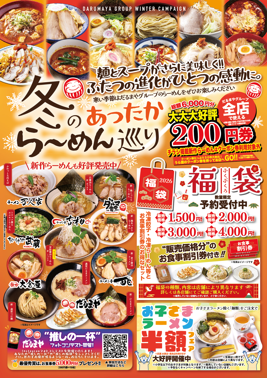 TOP > チラシ情報 > グルメ > 【だるまやチラシ】冬のあったからーめん巡り