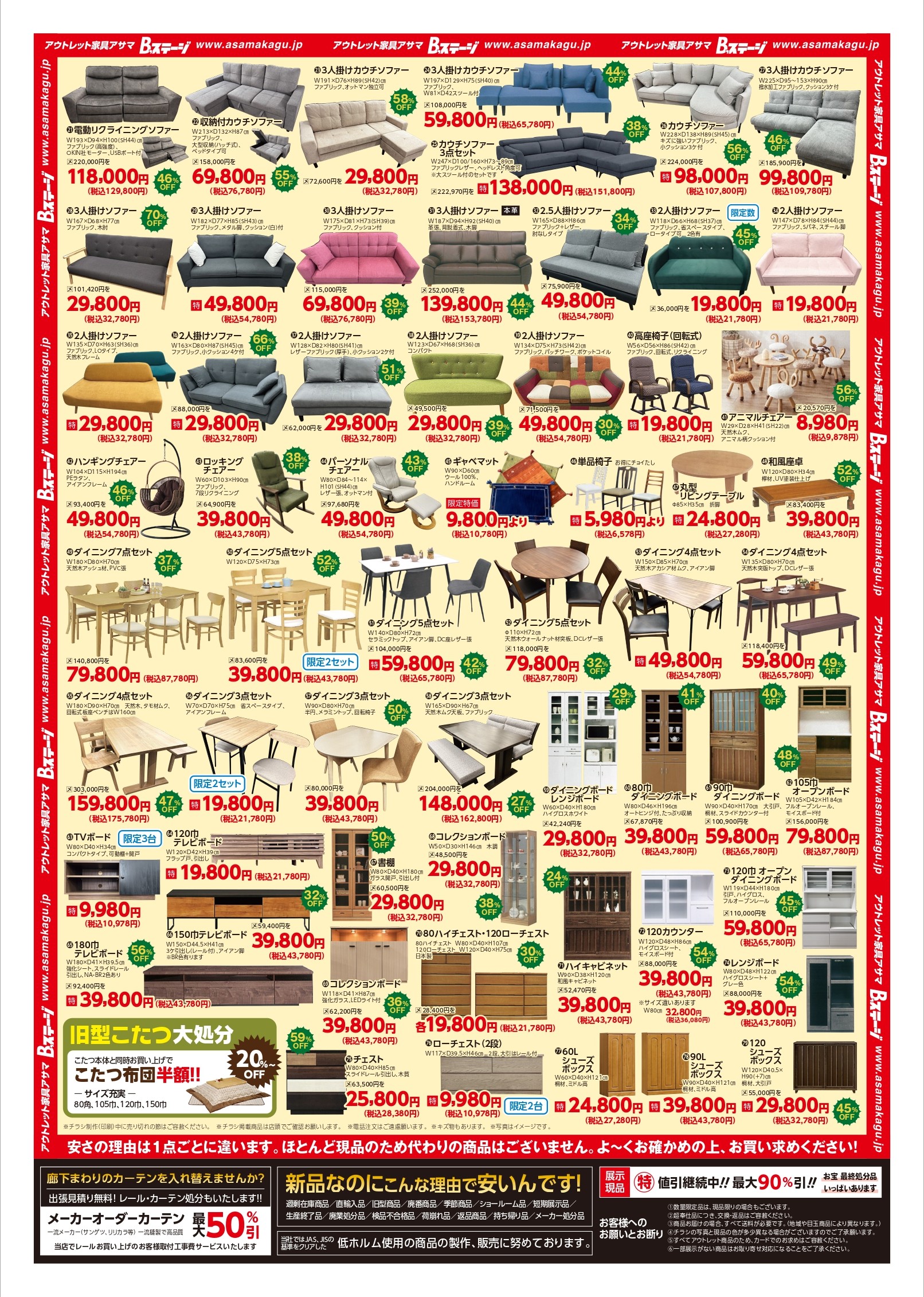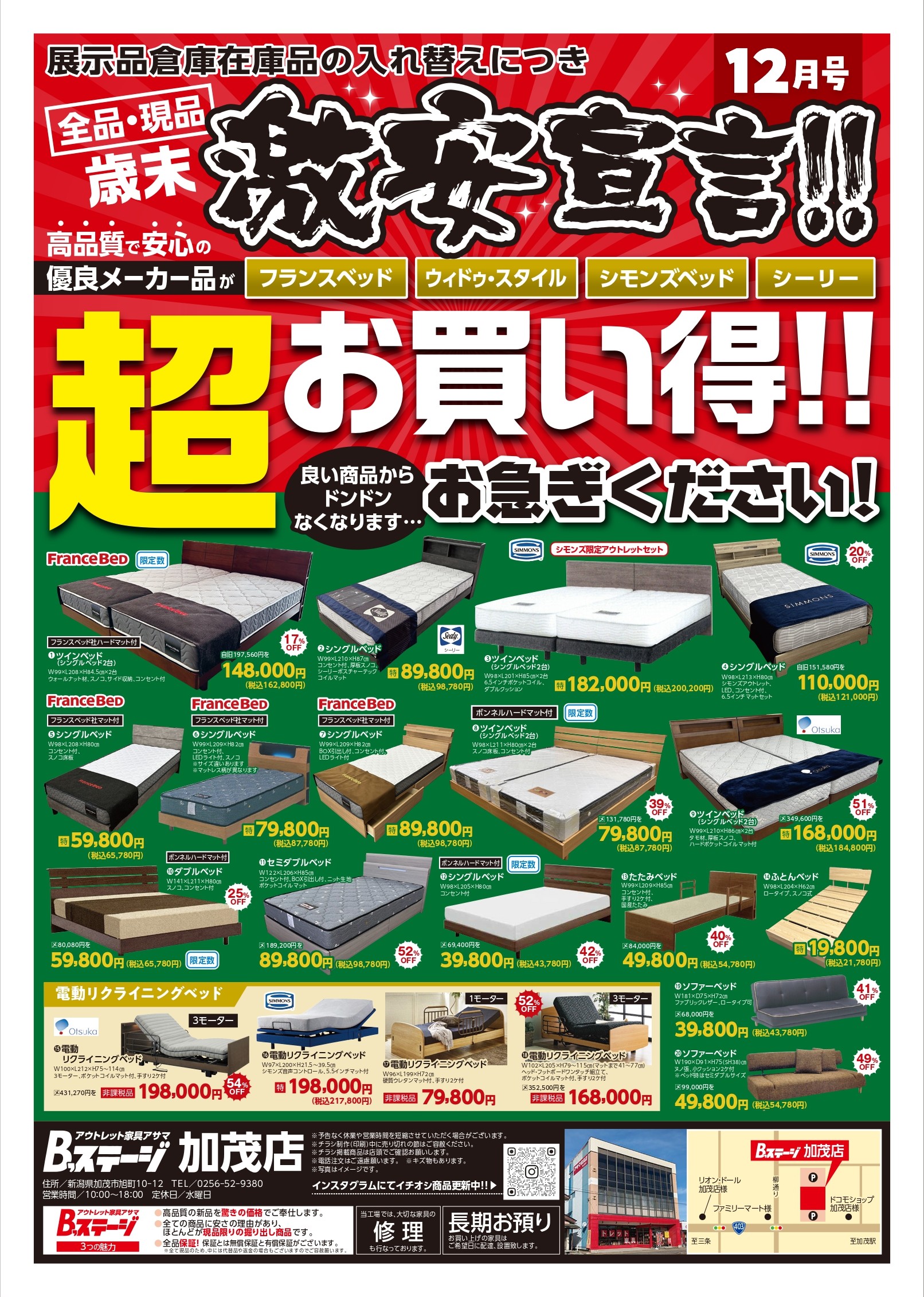 アウトレット家具アサマBステージ加茂店 【アウトレット家具アサマBステージ加茂店チラシ】歳末激安宣言!!優良メーカー品が超お買い得!! 掲載期間:2025年12月6日〜2025年12月30日 中越下越 インテリア・雑貨 画像をクリックして拡大 prev next 「アウトレット家具アサマBステージ加茂店」のInstagramはこちらから セール・新店情報を見逃さない! ガタチラをホーム画面に追加して、 最新情報をすぐチェック▶追加方法はかんたん♪ 関連 おしゃれなソファーも たくさんあるわね~♪