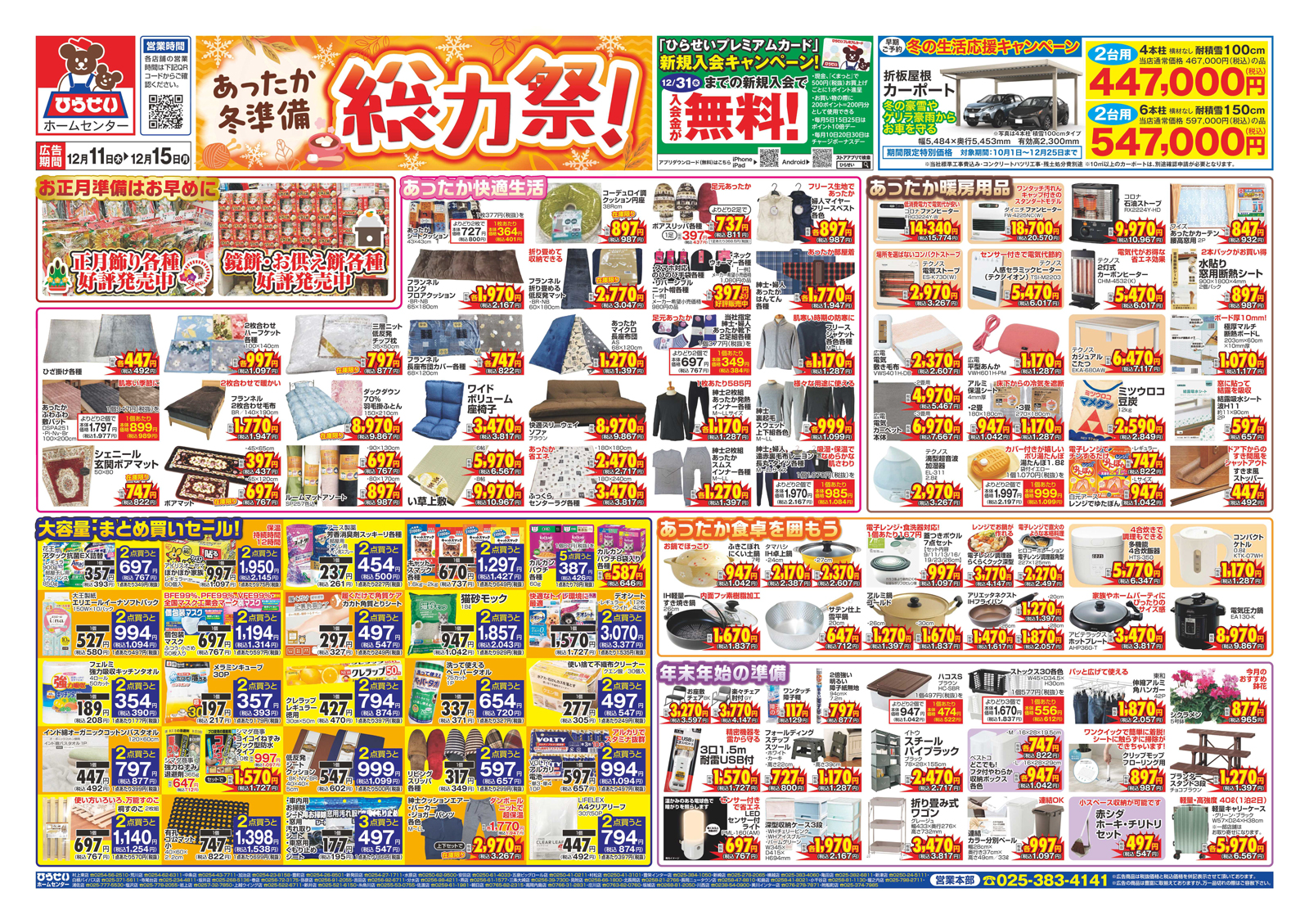 【ひらせいホームセンターチラシ】あったか冬準備 総力祭!