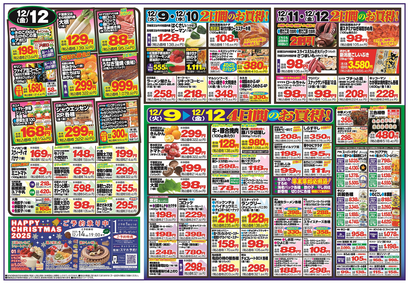 チャレンジャー 【チャレンジャーチラシ】4日間のお買得! 掲載期間:2025年12月9日〜2025年12月12日 中越新潟市下越 スーパーチャレンジャー 画像をクリックして拡大 prev next 対象店舗:燕三条店、新潟中央インター店、新発田店、赤道店、寺尾店、海老ケ瀬店、小千谷店、北長岡店、巻店、田家店 セール・新店情報を見逃さない! ガタチラをホーム画面に追加して、 最新情報をすぐチェック▶追加方法はかんたん♪ 関連 いちごがお買得だわ♪