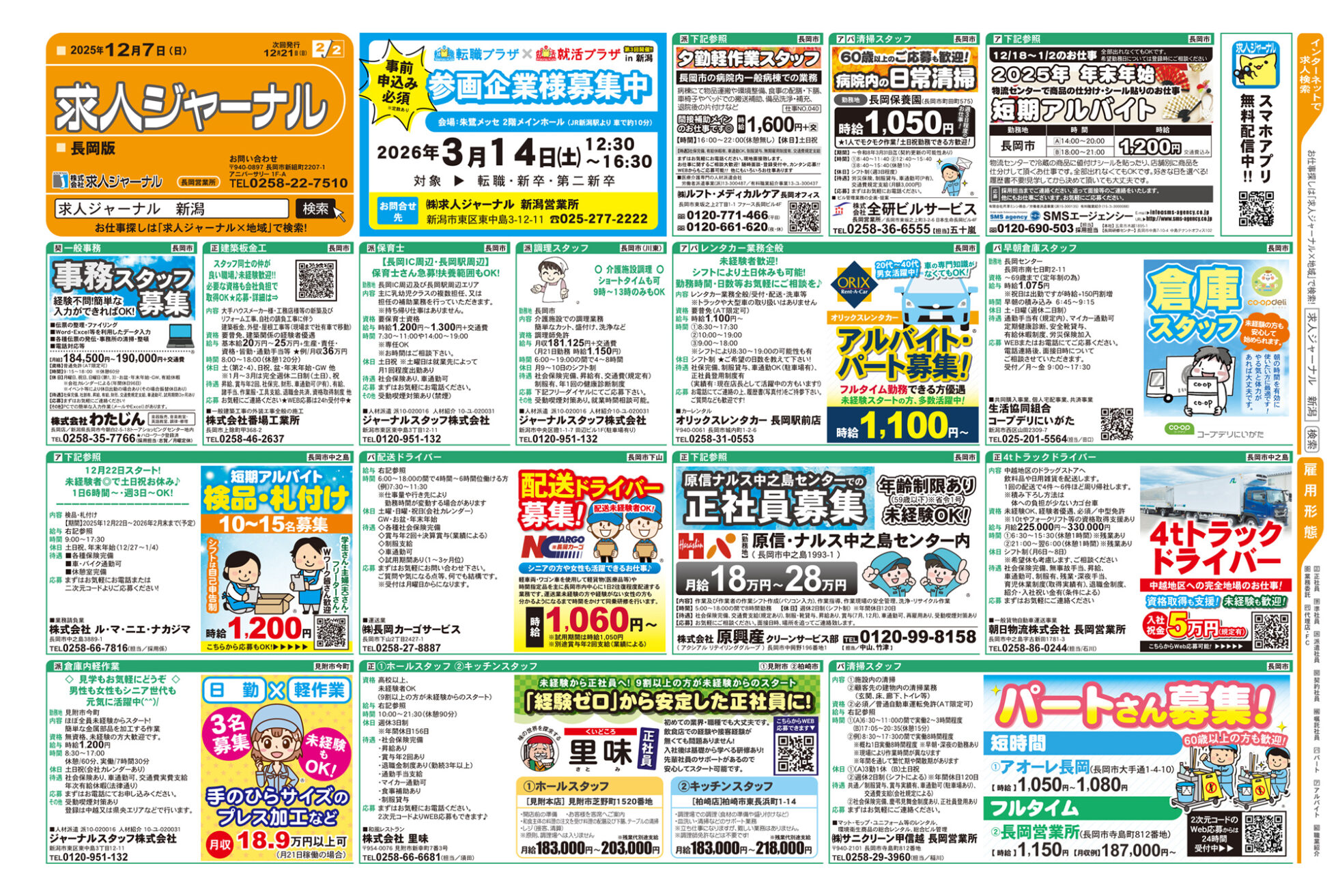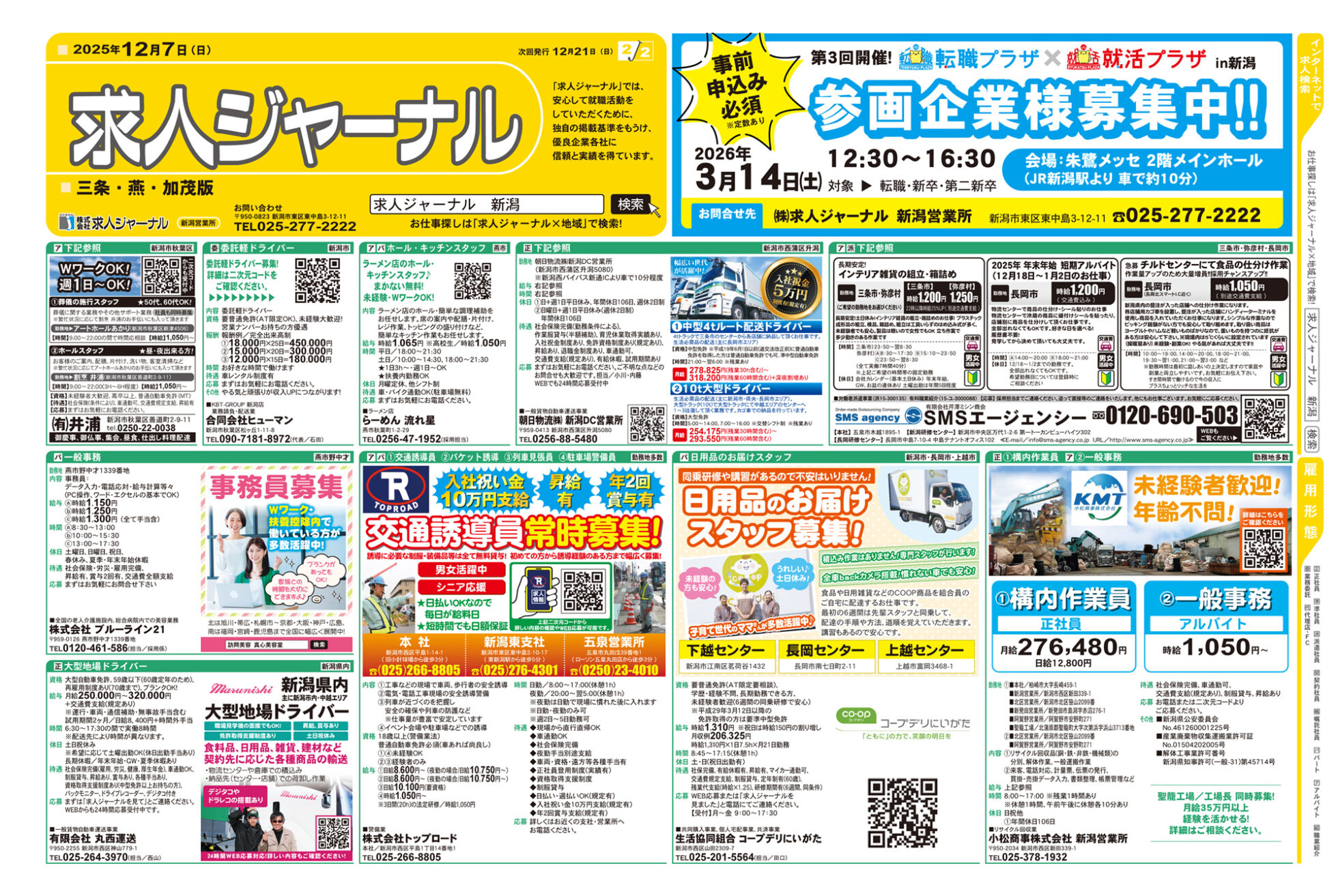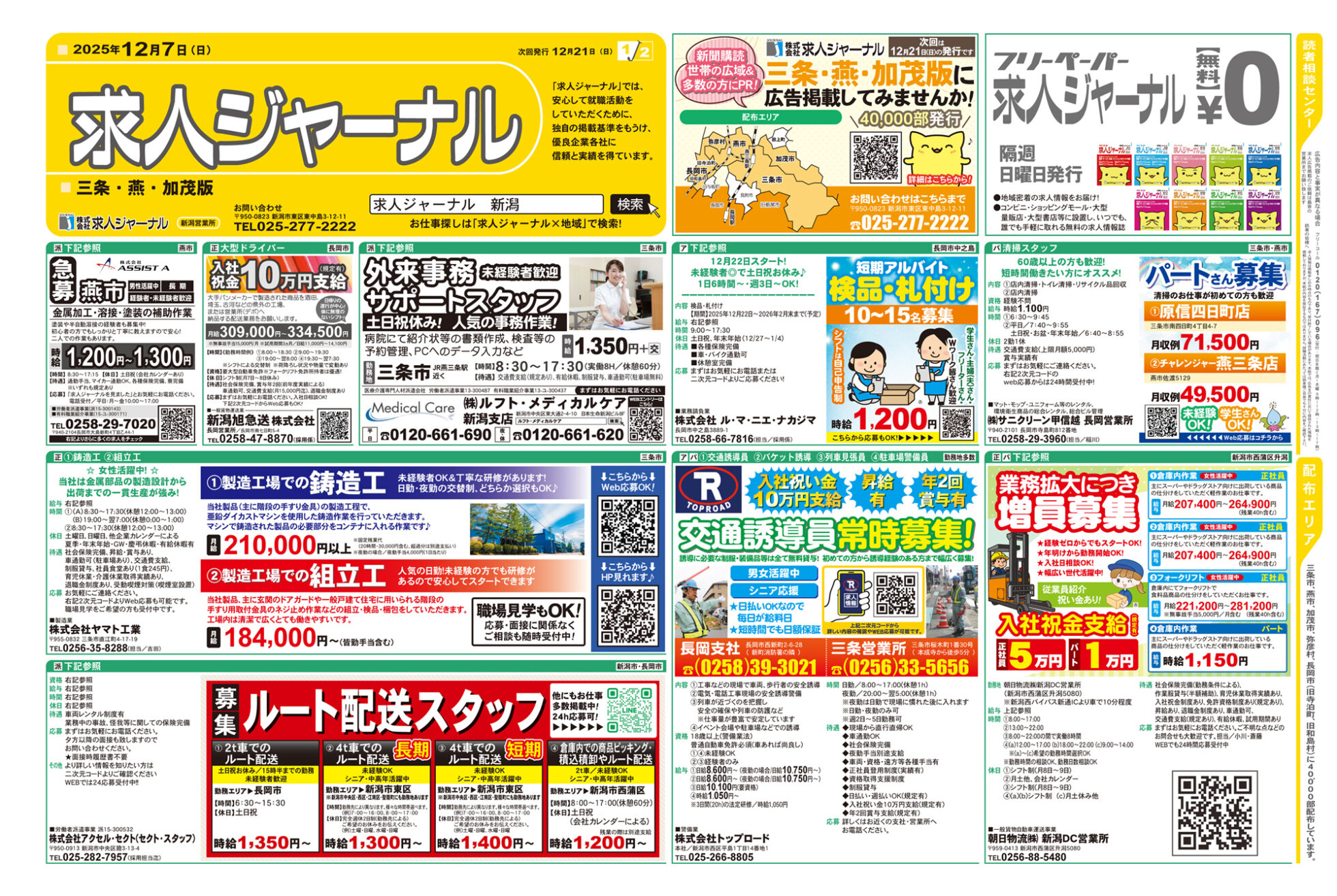 求人ジャーナル 【求人ジャーナルチラシ】12月7日号 掲載期間:2025年12月7日〜2025年12月13日 上越中越新潟市下越 求人 目次 上越・妙高版 長岡・柏崎版 三条・燕・加茂版 新潟版 上越・妙高版 画像をクリックして拡大 prev next 長岡・柏崎版 画像をクリックして拡大 prev next 三条・燕・加茂版 画像をクリックして拡大 prev next 新潟版 画像をクリックして拡大 prev next セール・新店情報を見逃さない! ガタチラをホーム画面に追加して、 最新情報をすぐチェック▶追加方法はかんたん♪ 関連 リゾートバイト やってみたいわ~♪