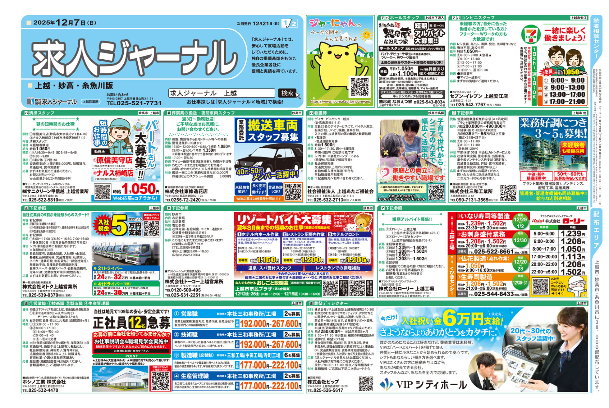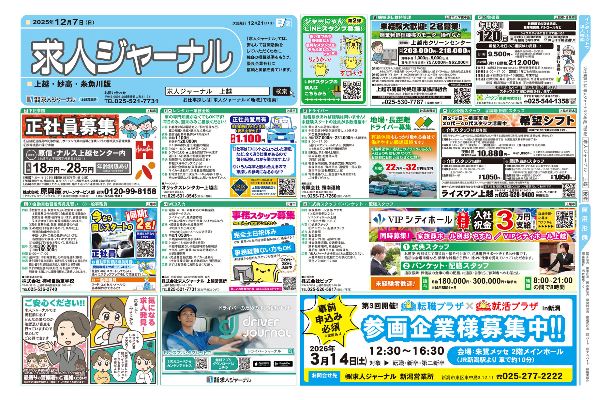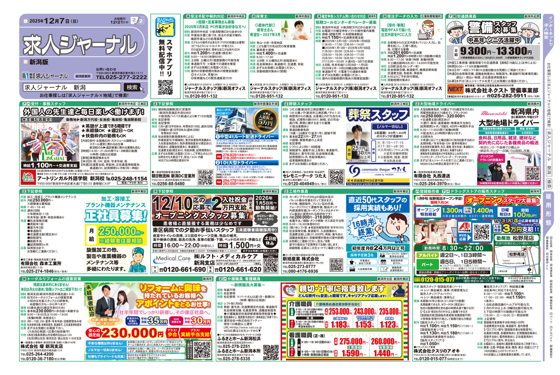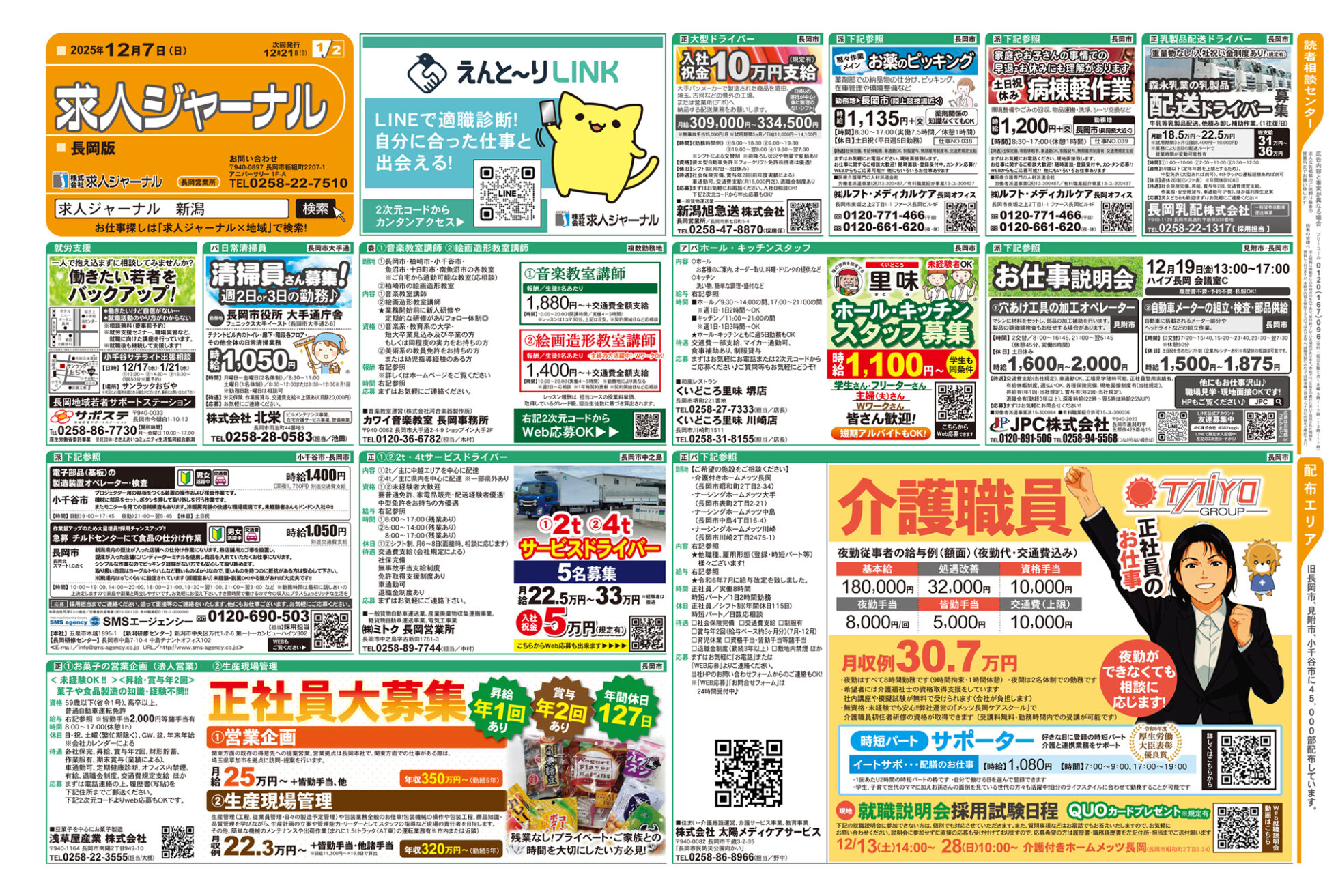 求人ジャーナル 【求人ジャーナルチラシ】12月7日号 掲載期間:2025年12月7日〜2025年12月13日 上越中越新潟市下越 求人 目次 上越・妙高版 長岡・柏崎版 三条・燕・加茂版 新潟版 上越・妙高版 画像をクリックして拡大 prev next 長岡・柏崎版 画像をクリックして拡大 prev next 三条・燕・加茂版 画像をクリックして拡大 prev next 新潟版 画像をクリックして拡大 prev next セール・新店情報を見逃さない! ガタチラをホーム画面に追加して、 最新情報をすぐチェック▶追加方法はかんたん♪ 関連 リゾートバイト やってみたいわ~♪