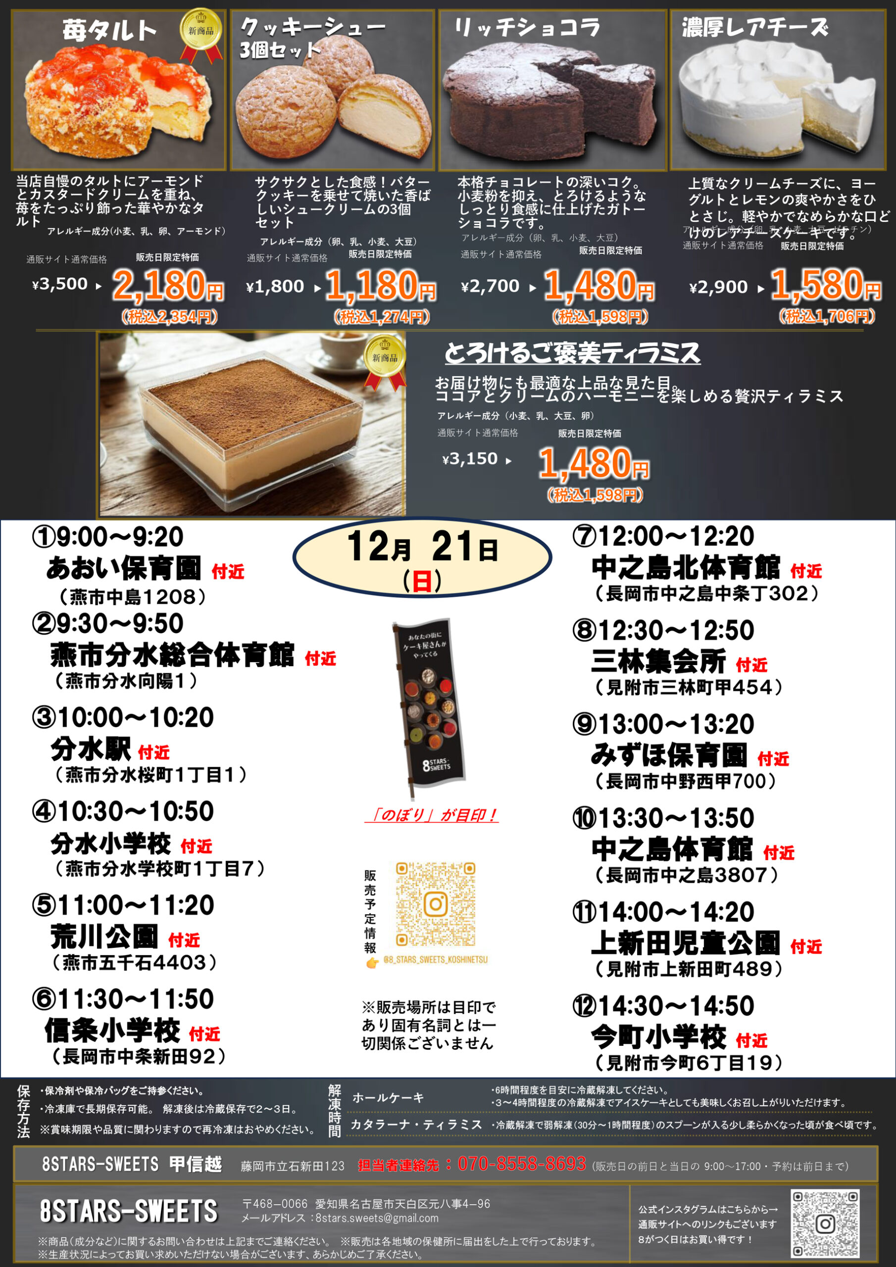 【8STARS-SWEETSチラシ】あなたの街にケーキ屋さんがやってくる12月21日限定移動販売