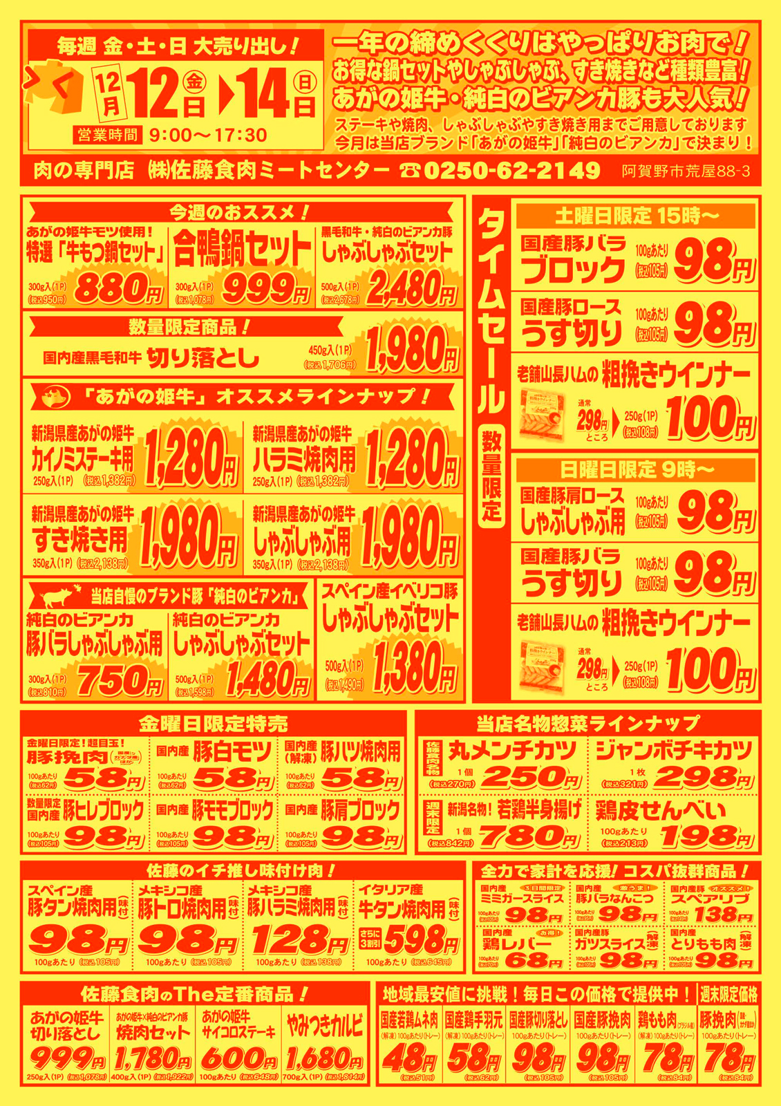【佐藤食肉チラシ】一年の締めくくりはやっぱりお肉で!