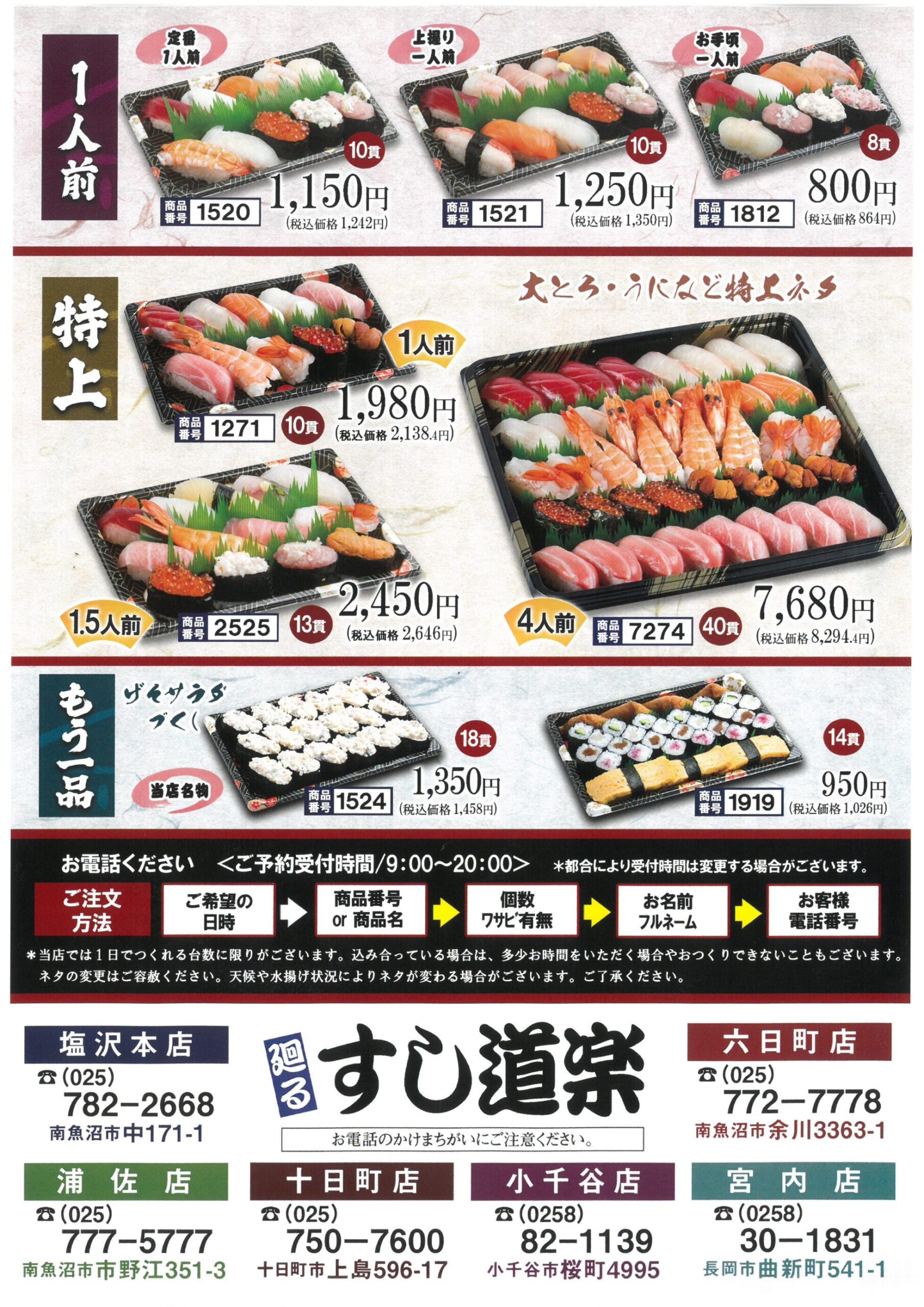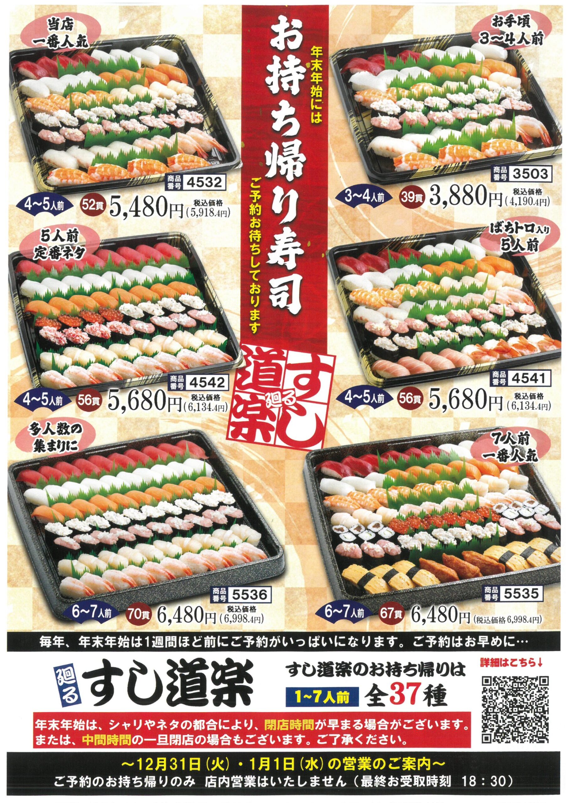 【すし道楽チラシ】年末年始にはお持ち帰り寿司