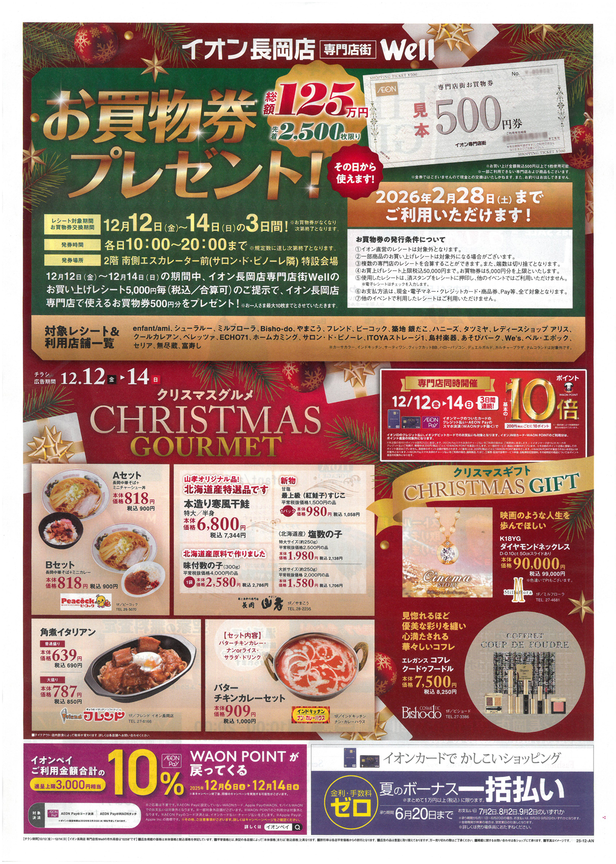 【イオン長岡店専門店街Wellチラシ】お買い物券プレゼント!