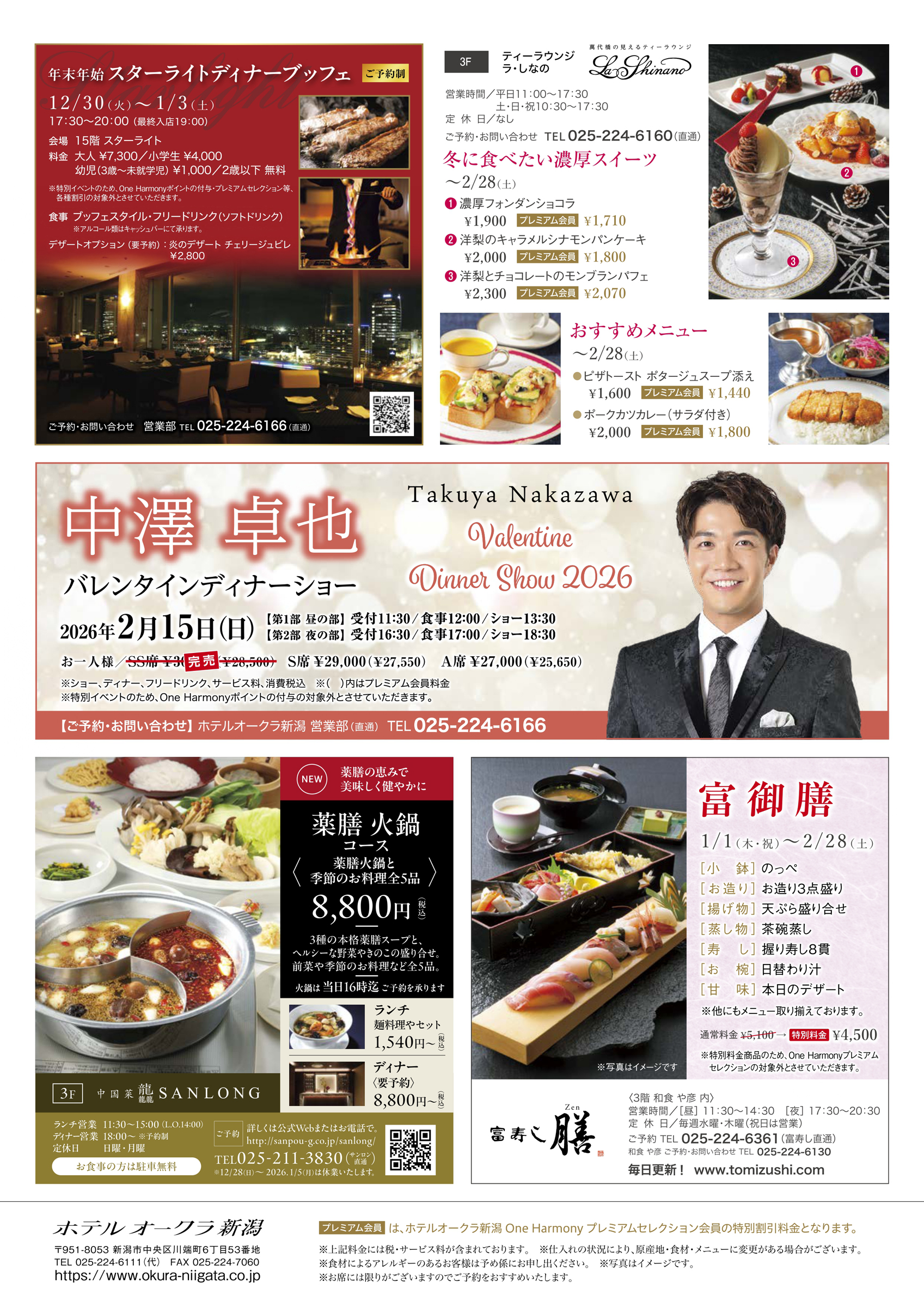 【ホテルオークラ新潟チラシ】オークラプレス1・2月号