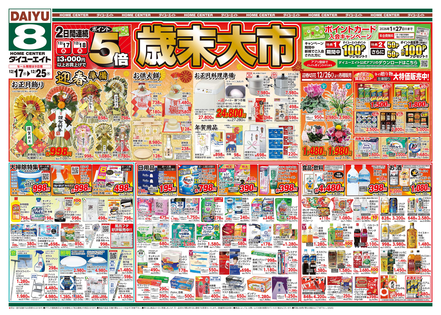 TOP > チラシ情報 > ホームセンター > 【ダイユーエイトチラシ】歳末大市