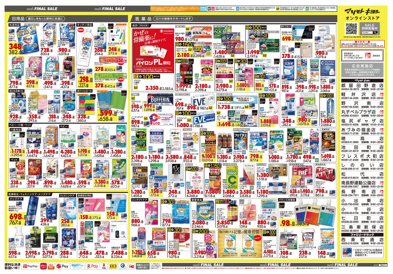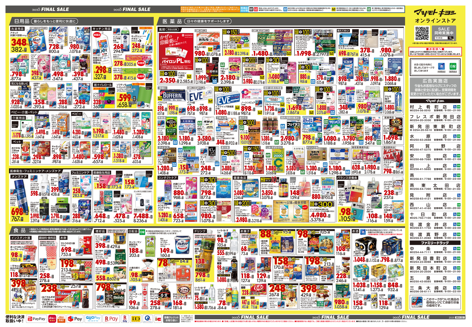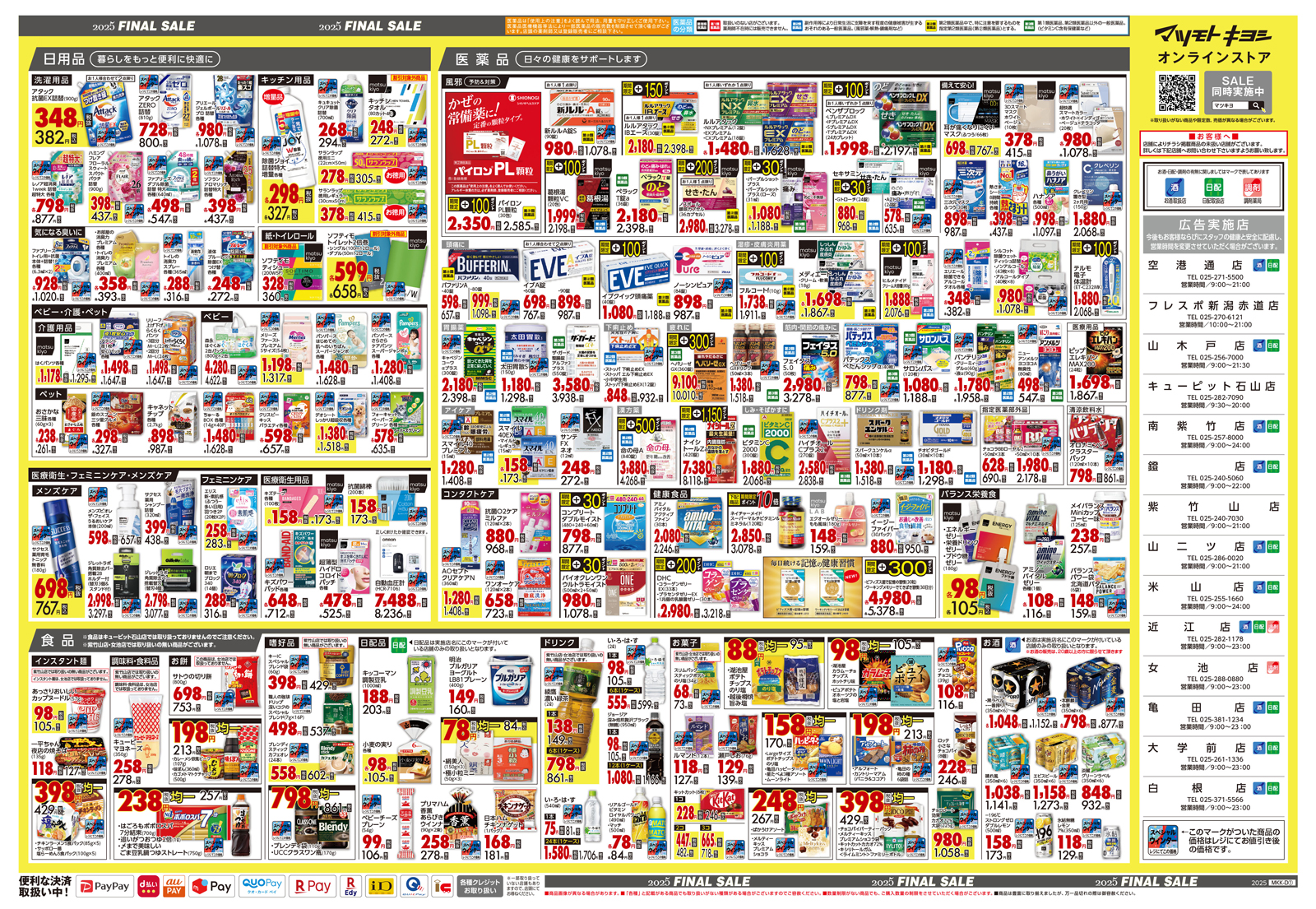 【マツモトキヨシ】小出東店・小千谷店 ・七日町店・三条東新保店 【ファミリードラッグ】西湊町通店