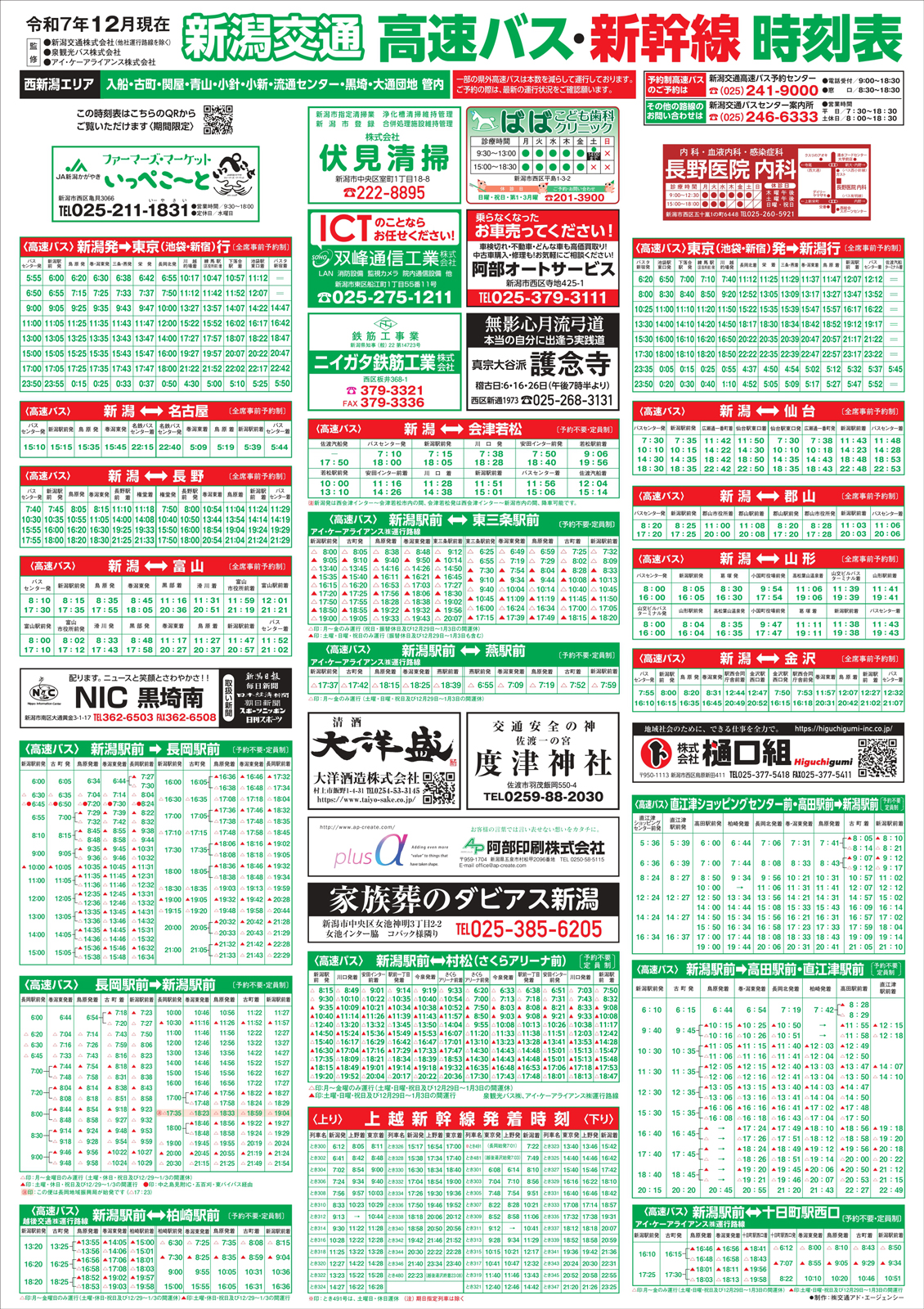 新潟交通・高速バス新幹線時刻表