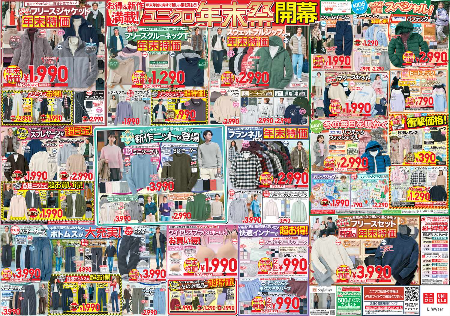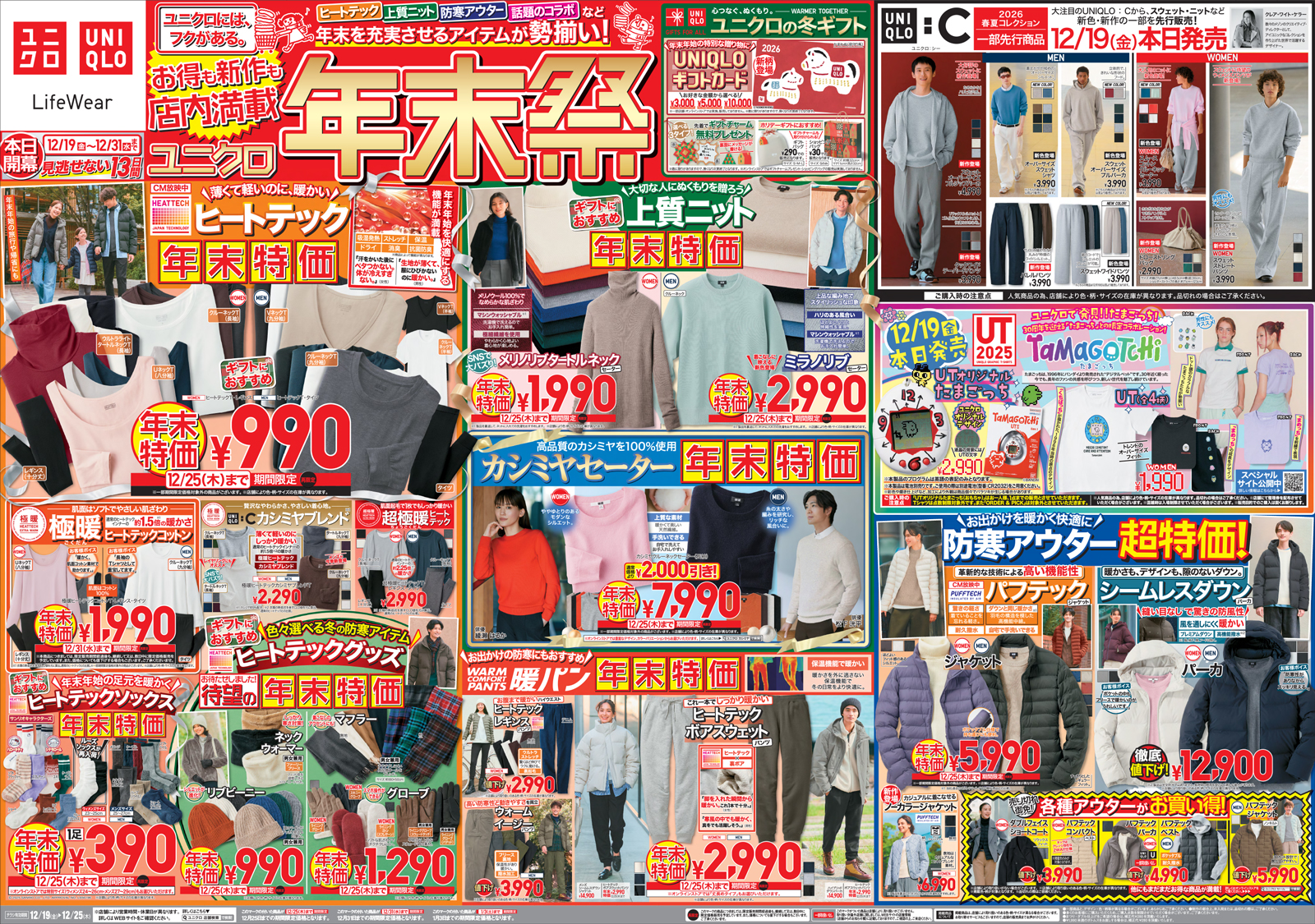 ユニクロ 【ユニクロチラシ】年末祭 掲載期間:2025年12月19日〜2025年12月25日 上越中越新潟市下越 ファッション 画像をクリックして拡大 prev next セール・新店情報を見逃さない! ガタチラをホーム画面に追加して、 最新情報をすぐチェック▶追加方法はかんたん♪ 関連 冬の必需品たちがお買得だわ♪