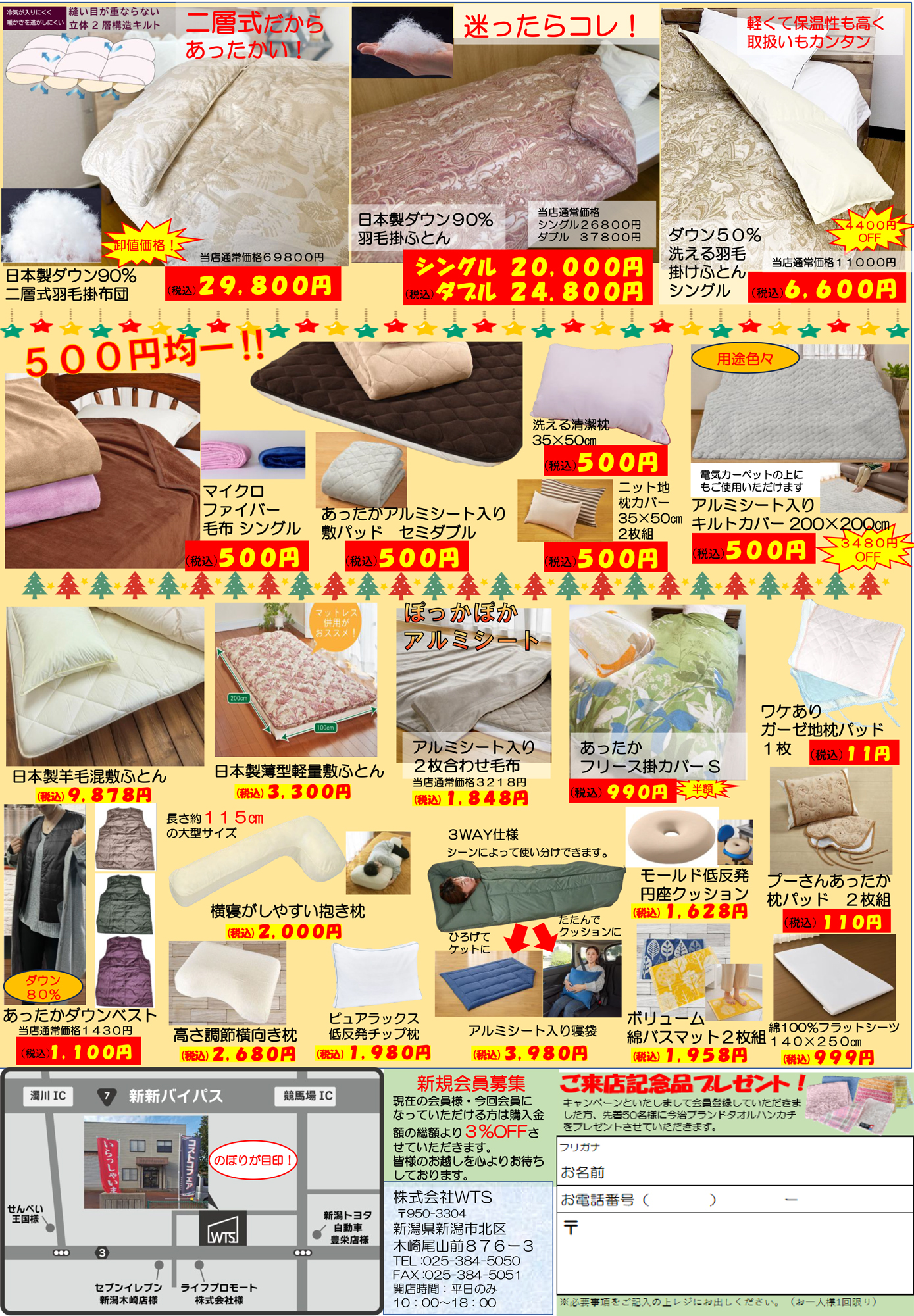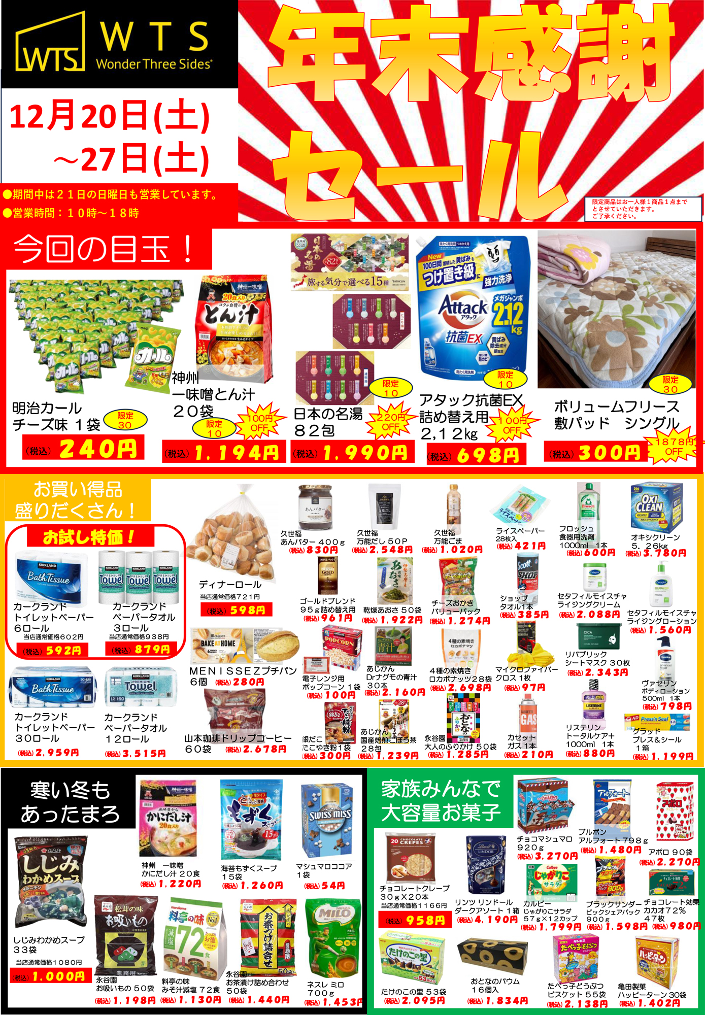 株式会社WTS 【WTSチラシ】年末感謝セール 掲載期間:2025年12月20日〜2025年12月27日 新潟市 インテリア・雑貨 画像をクリックして拡大 prev next セール・新店情報を見逃さない! ガタチラをホーム画面に追加して、 最新情報をすぐチェック▶追加方法はかんたん♪ 関連 「カール」が売っているのね!
