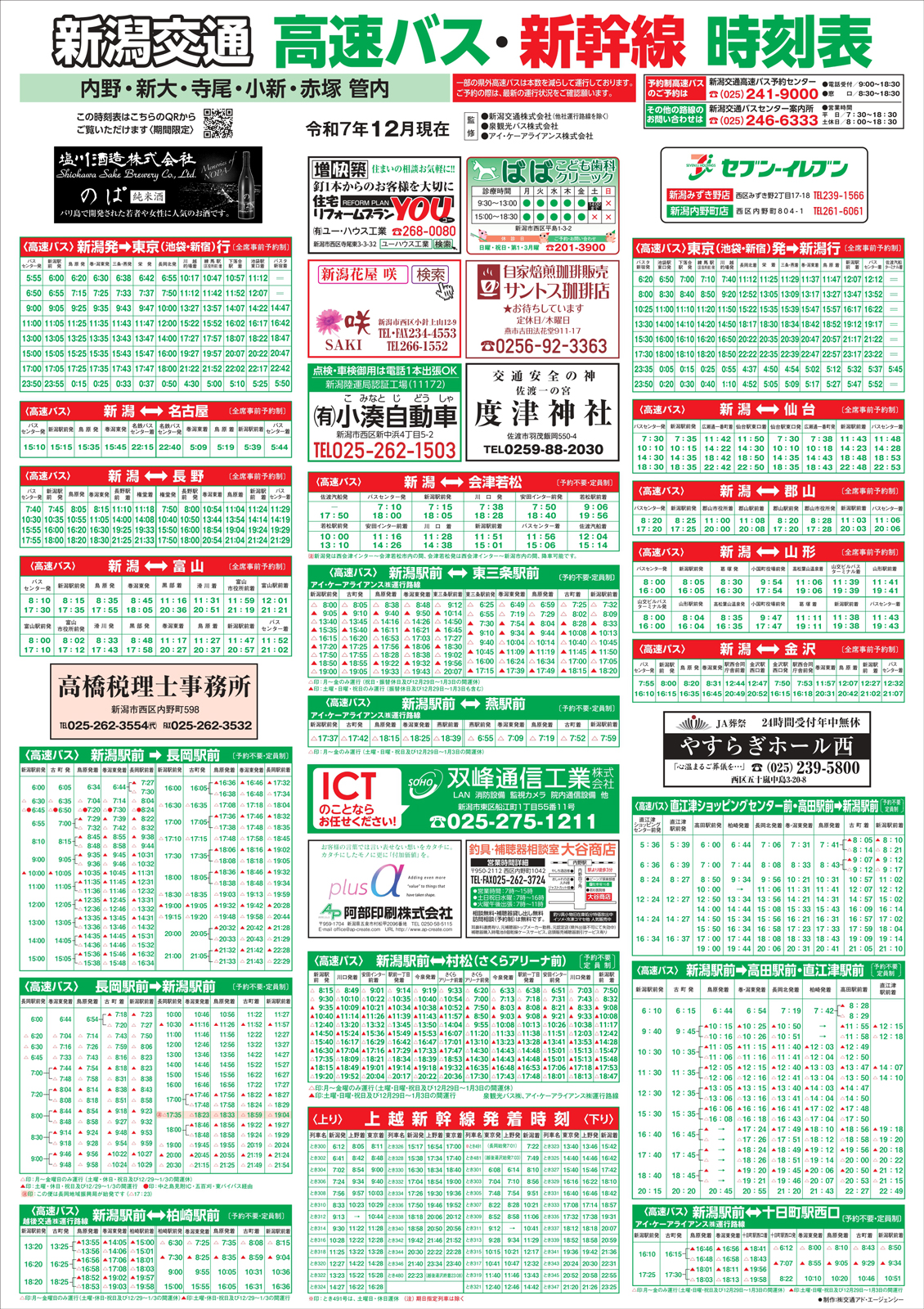 新潟交通・高速バス新幹線時刻表 【新潟交通・高速バス新幹線時刻表チラシ】内野地区 掲載期間:2025年12月20日〜2026年2月28日 新潟市 時刻表 画像をクリックして拡大 prev next セール・新店情報を見逃さない! ガタチラをホーム画面に追加して、 最新情報をすぐチェック▶追加方法はかんたん♪ 関連 利用している人は よく確認してね♪