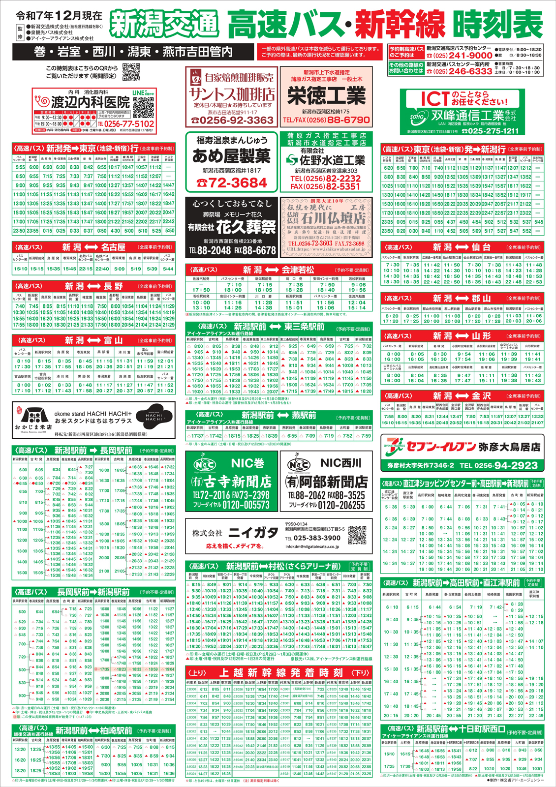 新潟交通・高速バス新幹線時刻表 【新潟交通・高速バス新幹線時刻表チラシ】西川・巻地区 掲載期間:2025年12月27日〜2026年2月28日 新潟市 時刻表 画像をクリックして拡大 prev next セール・新店情報を見逃さない! ガタチラをホーム画面に追加して、 最新情報をすぐチェック▶追加方法はかんたん♪ 関連 乗り遅れないようにしっかりチェックよ!