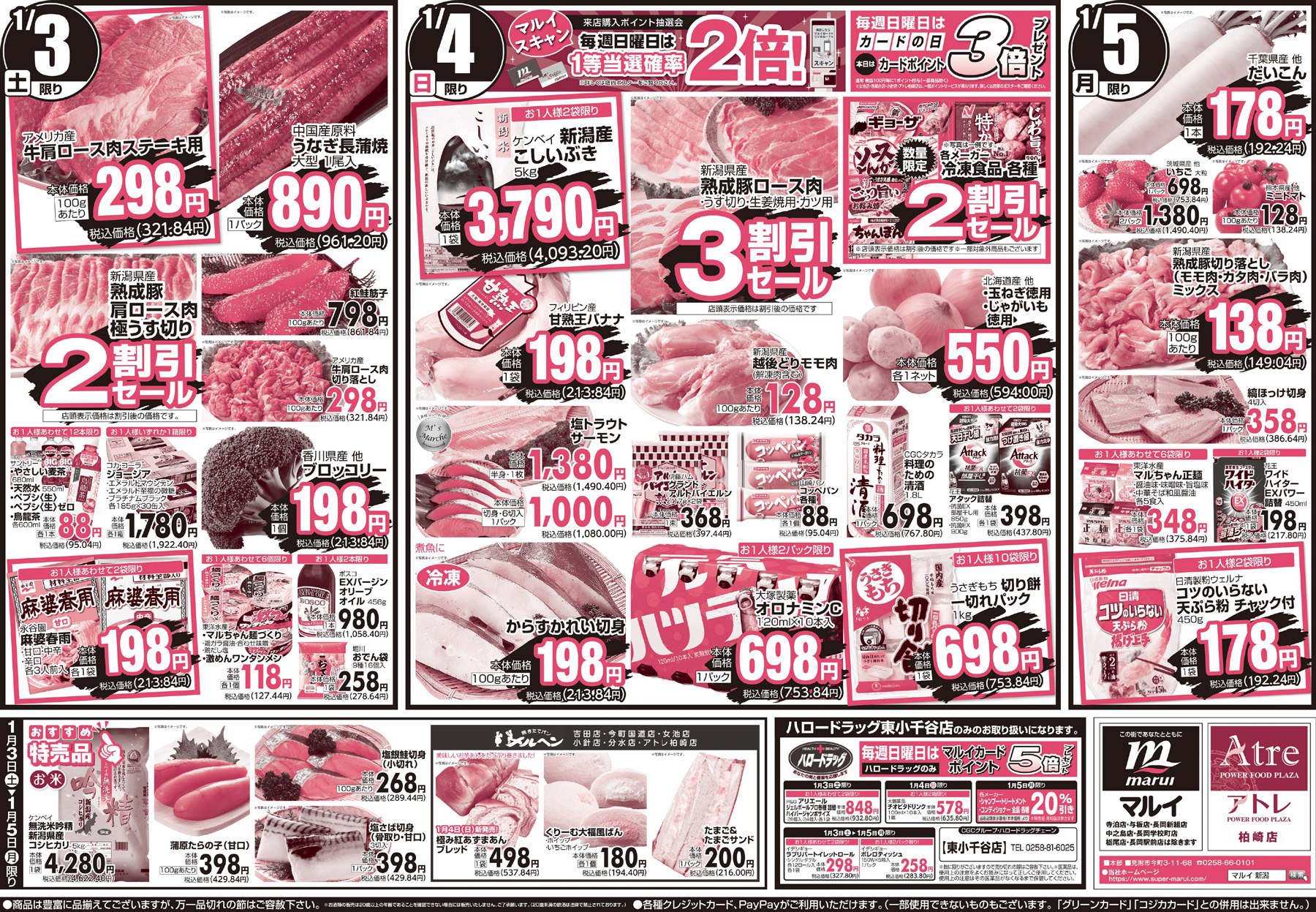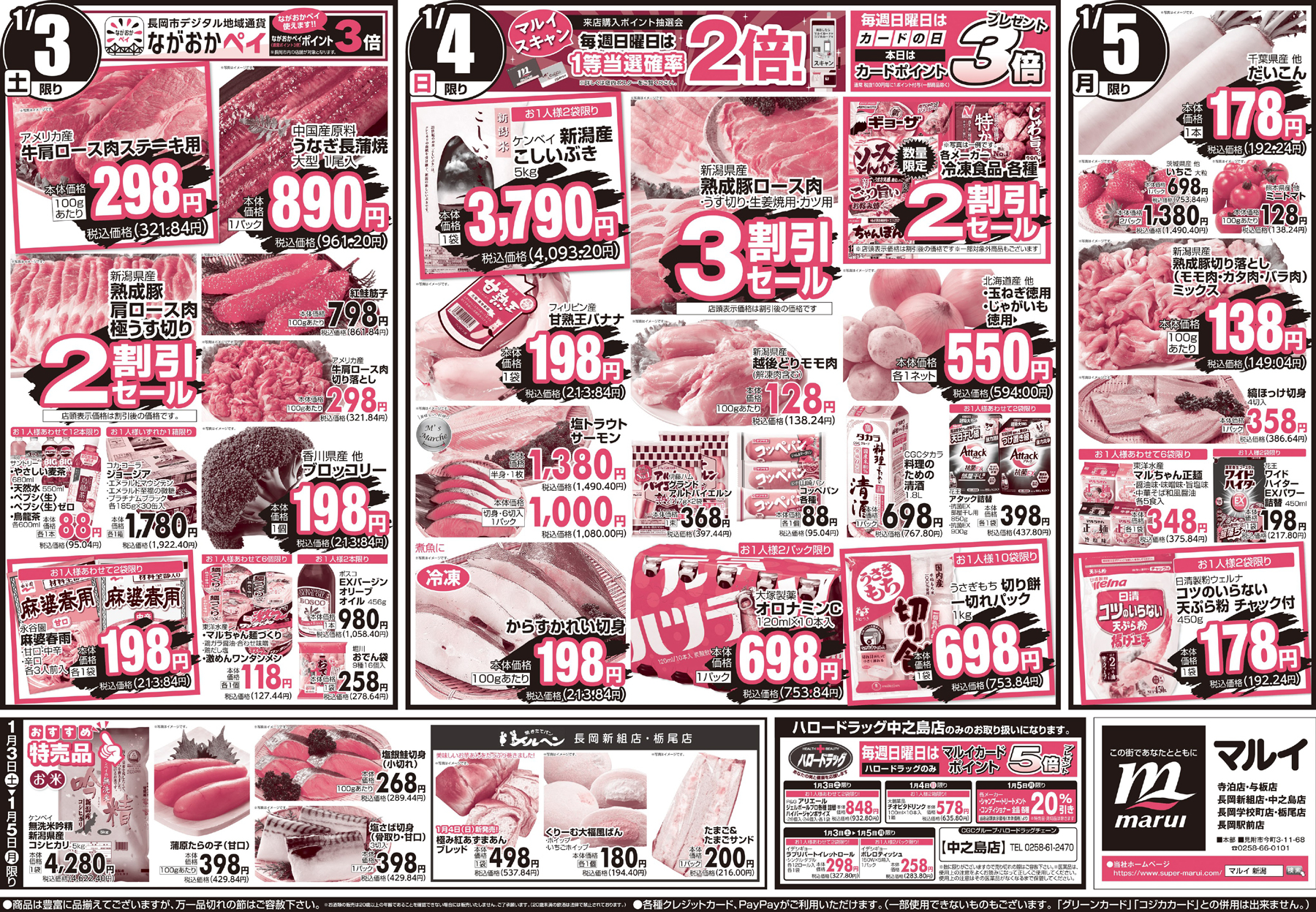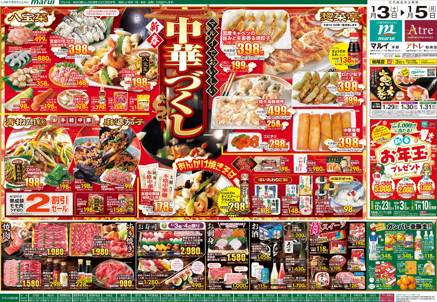 株式会社マルイ 【マルイチラシ】中華づくし 掲載期間:2026年1月3日〜2026年1月5日 中越新潟市下越 スーパーマルイ 目次 各店 寺泊店・与板店・長岡新組店・中之島店・長岡学校町店・栃尾店・長岡駅前店 各店 画像をクリックして拡大 prev next 寺泊店・与板店・長岡新組店・中之島店・長岡学校町店・栃尾店・長岡駅前店 画像をクリックして拡大 prev next セール・新店情報を見逃さない! ガタチラをホーム画面に追加して、 最新情報をすぐチェック▶追加方法はかんたん♪ 関連 お家中華はお得でおいしくて嬉しいわね!