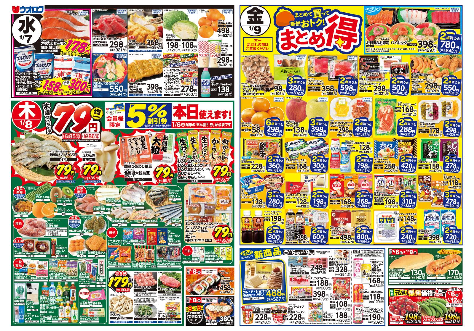 ウオロク 【ウオロクチラシ】まとめ得 掲載期間:2026年1月6日〜2026年1月9日 上越中越新潟市下越 スーパーウオロク 画像をクリックして拡大 prev next セール・新店情報を見逃さない! ガタチラをホーム画面に追加して、 最新情報をすぐチェック▶追加方法はかんたん♪ 関連 会員になると色々お得ね!