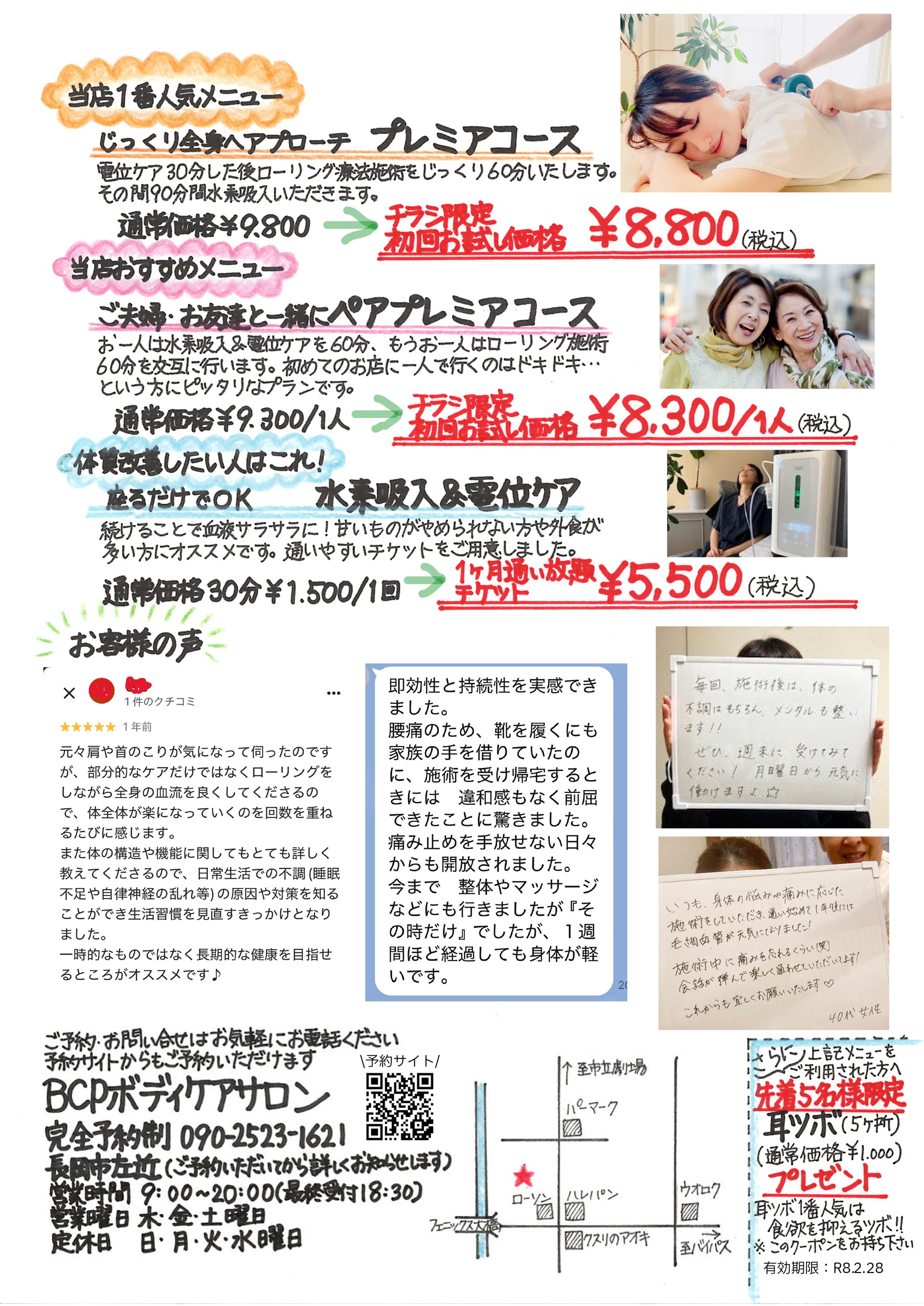 BCPボディケアサロン長岡 【BCPボディケアサロン長岡チラシ】BCPボディケアサロンが選ばれる理由 掲載期間:2026年1月14日〜2026年2月28日 中越 美容 画像をクリックして拡大 prev next ※「ガタチラ見た」でクーポン使用可 セール・新店情報を見逃さない! ガタチラをホーム画面に追加して、 最新情報をすぐチェック▶追加方法はかんたん♪ 関連 私も体の不調とさよならしたいわ~♪