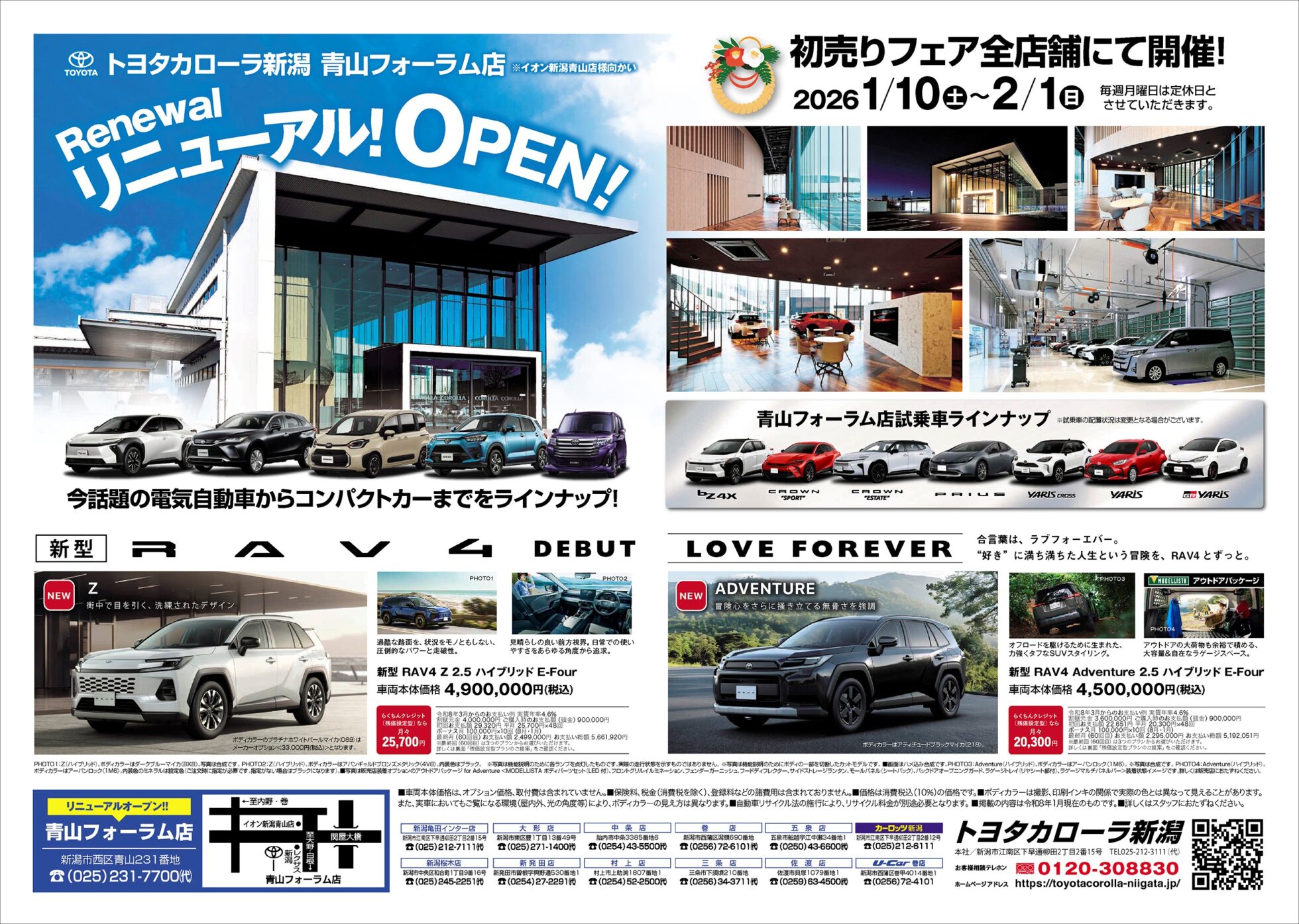 トヨタカローラ新潟 青山フォーラム店 【トヨタカローラ新潟 青山フォーラム店チラシ】リニューアル!OPEN! 掲載期間:2026年1月9日〜2026年2月1日 新潟市 車・カー用品 画像をクリックして拡大 prev next セール・新店情報を見逃さない! ガタチラをホーム画面に追加して、 最新情報をすぐチェック▶追加方法はかんたん♪ 関連 新型車かっこいいな~♪