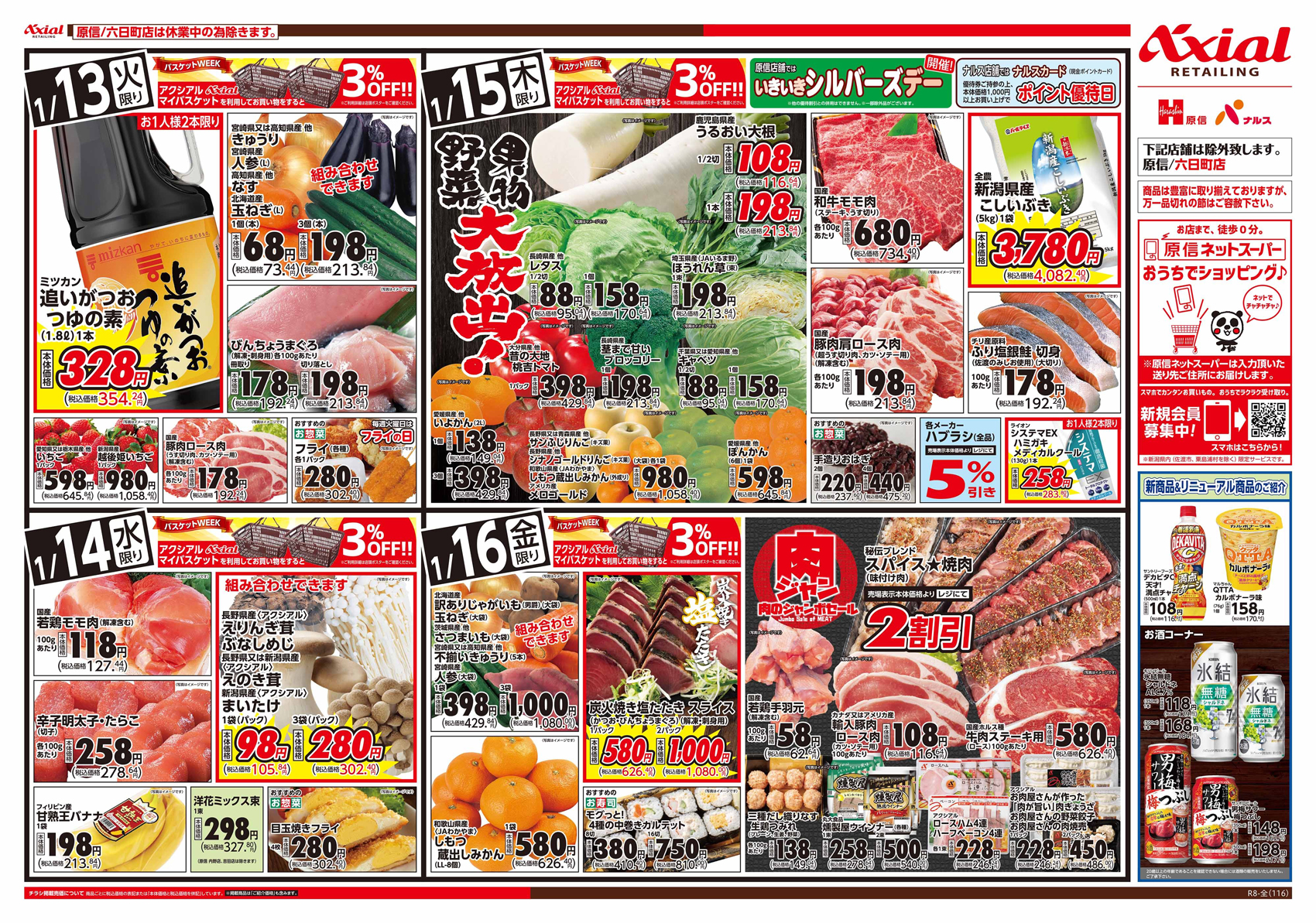 原信ナルス 【原信ナルスチラシ】暮らし応援価格/Long Run Price 掲載期間:2026年1月13日〜2026年1月16日 上越中越新潟市下越 スーパー原信ナルス 画像をクリックして拡大 prev next 対象:全店(六日町店を除く) セール・新店情報を見逃さない! ガタチラをホーム画面に追加して、 最新情報をすぐチェック▶追加方法はかんたん♪ 関連 新発売の「ジャークチキン」 食べてみたいわ~♪