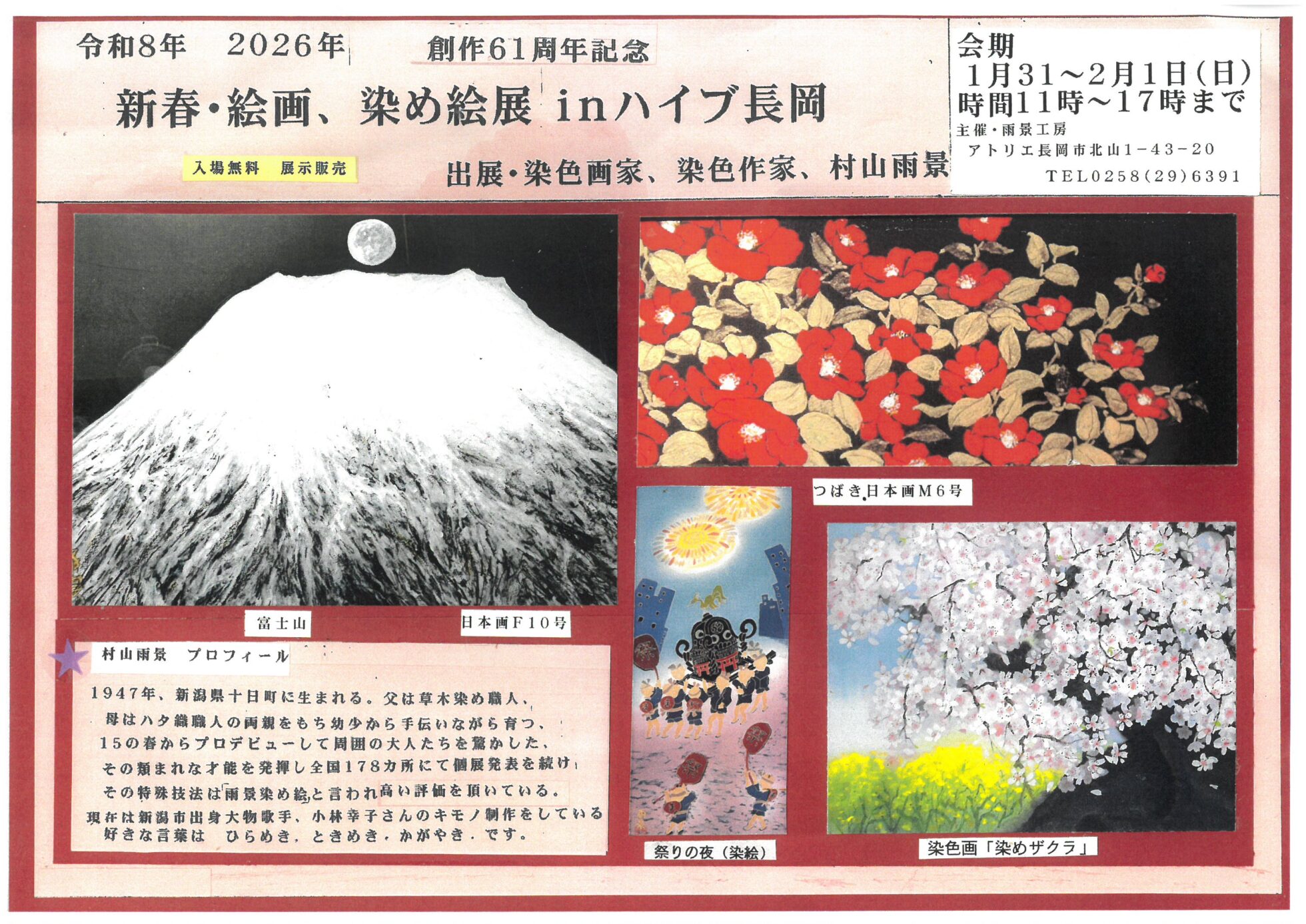 村山雨景 【村山雨景チラシ】染め絵展 in ハイブ長岡 掲載期間:2026年1月30日〜2026年2月1日 中越 イベント 画像をクリックして拡大 prev next セール・新店情報を見逃さない! ガタチラをホーム画面に追加して、 最新情報をすぐチェック▶追加方法はかんたん♪ 関連 素敵な染め絵ね~♪