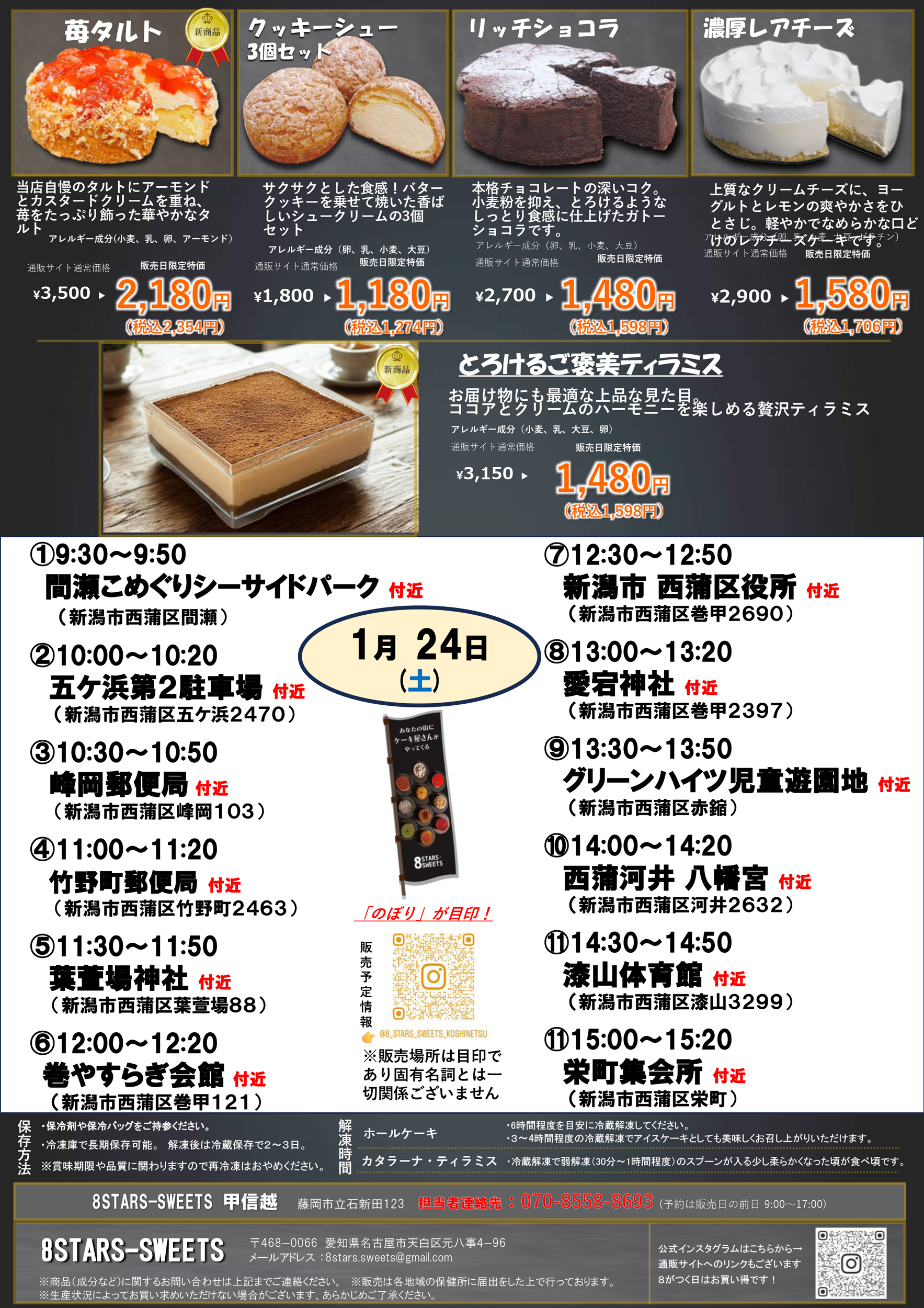 【8STARS-SWEETSチラシ】あなたの街にケーキ屋さんがやってくる1月24日限定移動販売
