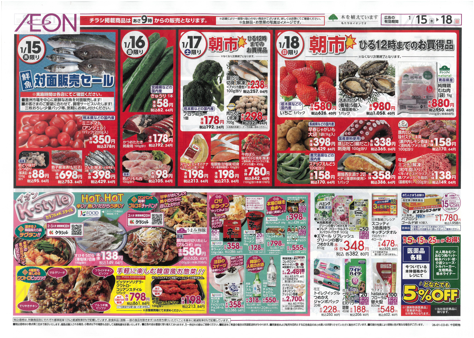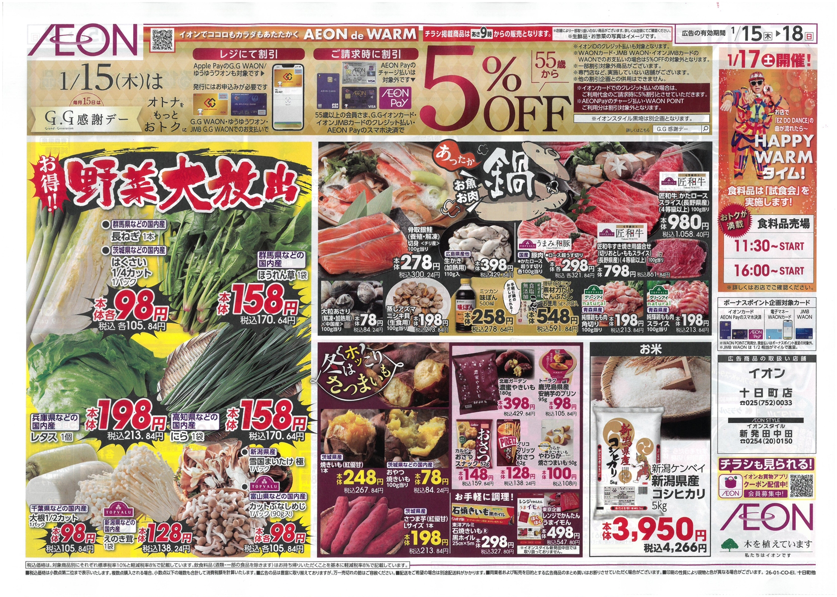 TOP > チラシ情報 > 百貨店・ショッピングセンター > 【イオン十日町店チラシ】野菜大放出/韓国フェア