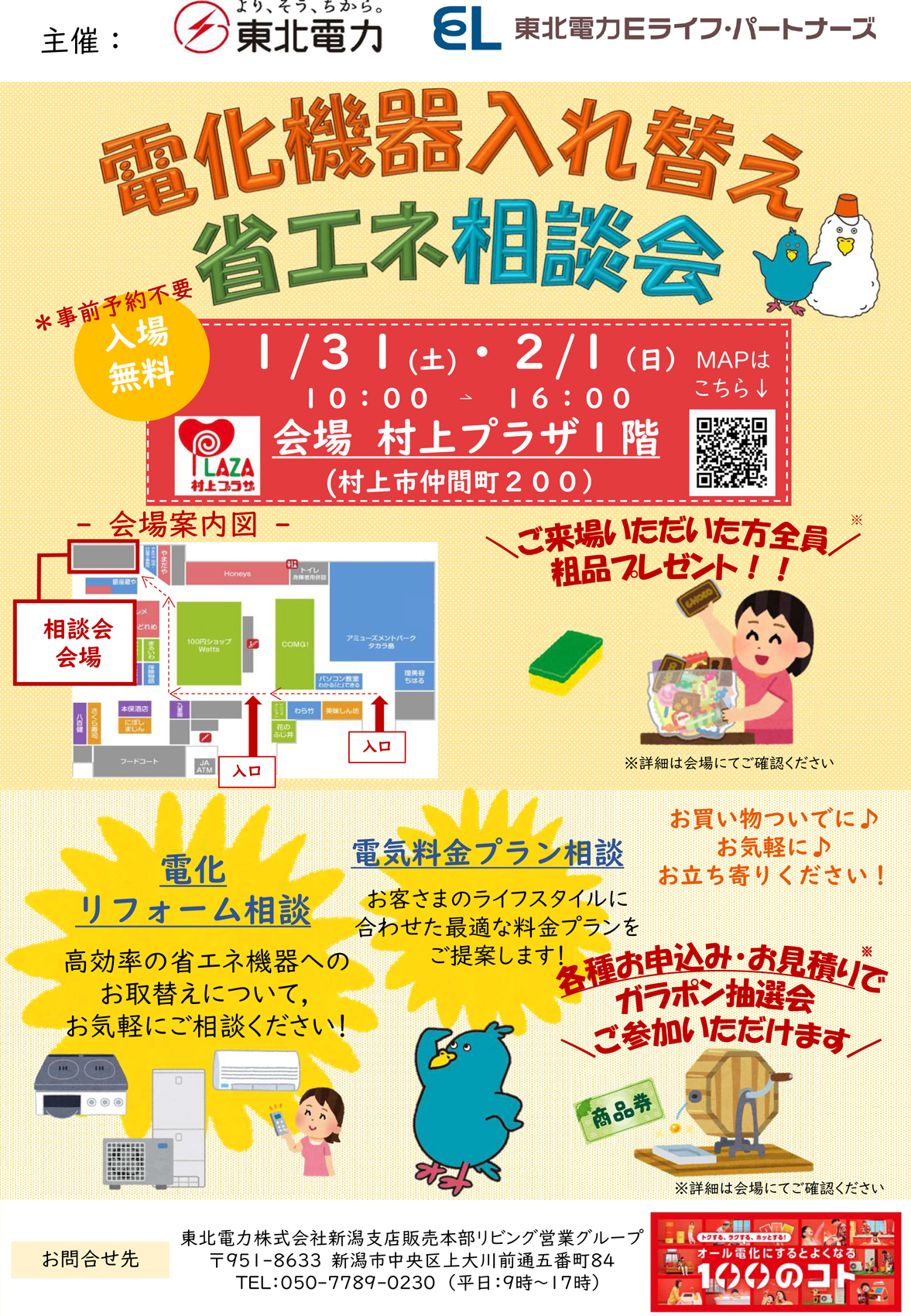 東北電力 新潟支店 【東北電力 新潟支店チラシ】(村上会場)電化機器入れ替え&省エネ相談会 掲載期間:2026年1月28日〜2026年2月1日 下越 生活サービス 画像をクリックして拡大 prev next セール・新店情報を見逃さない! ガタチラをホーム画面に追加して、 最新情報をすぐチェック▶追加方法はかんたん♪ 関連 料金プランを見直して、節約したいわね!
