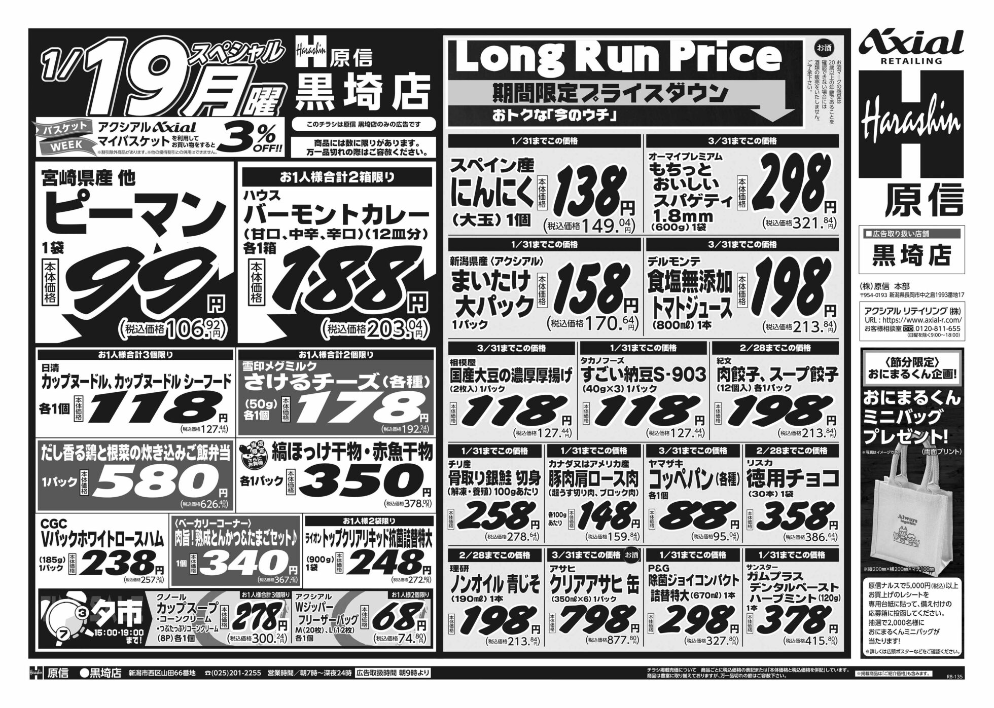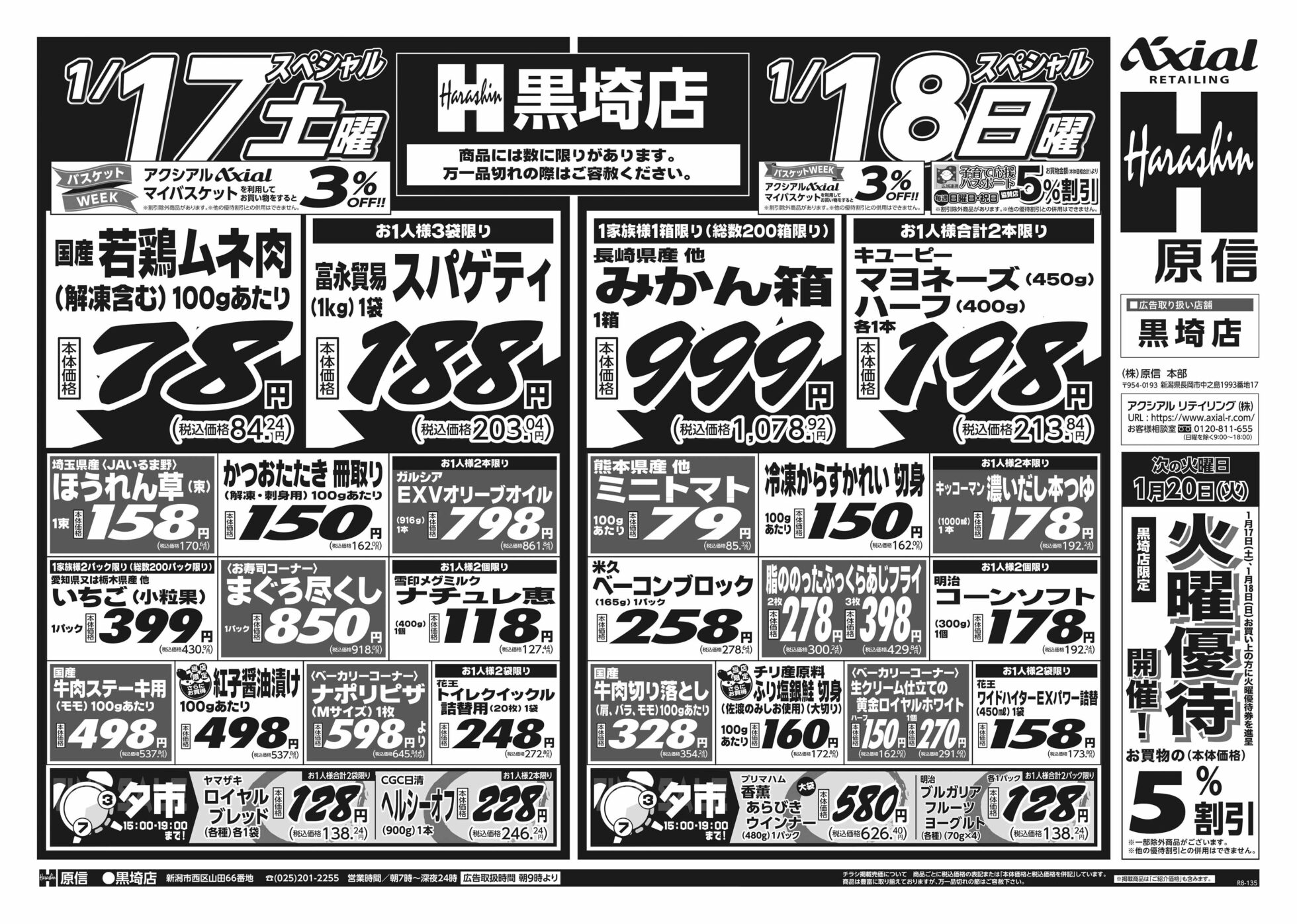 原信ナルス 【原信ナルス黒埼店チラシ】土曜スペシャル/日曜スペシャル/月曜スペシャル 掲載期間:2026年1月17日〜2026年1月19日 新潟市 スーパー原信ナルス 画像をクリックして拡大 prev next 対象:黒埼店 セール・新店情報を見逃さない! ガタチラをホーム画面に追加して、 最新情報をすぐチェック▶追加方法はかんたん♪ 関連 お買い得商品を見逃さないようにしないと!